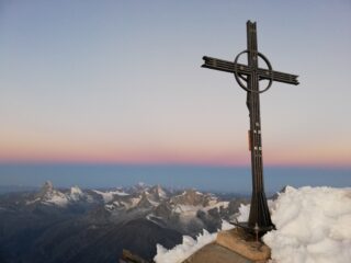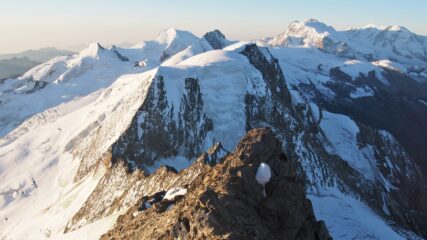 Seconda colazione al bivacco e alle 9 si riparte per l’Alphubel, questa volta senza ramponi fino alla cupola nevosa, poi solito copione del giorno prima e alle 12.15 siamo al Mittellalain.
