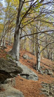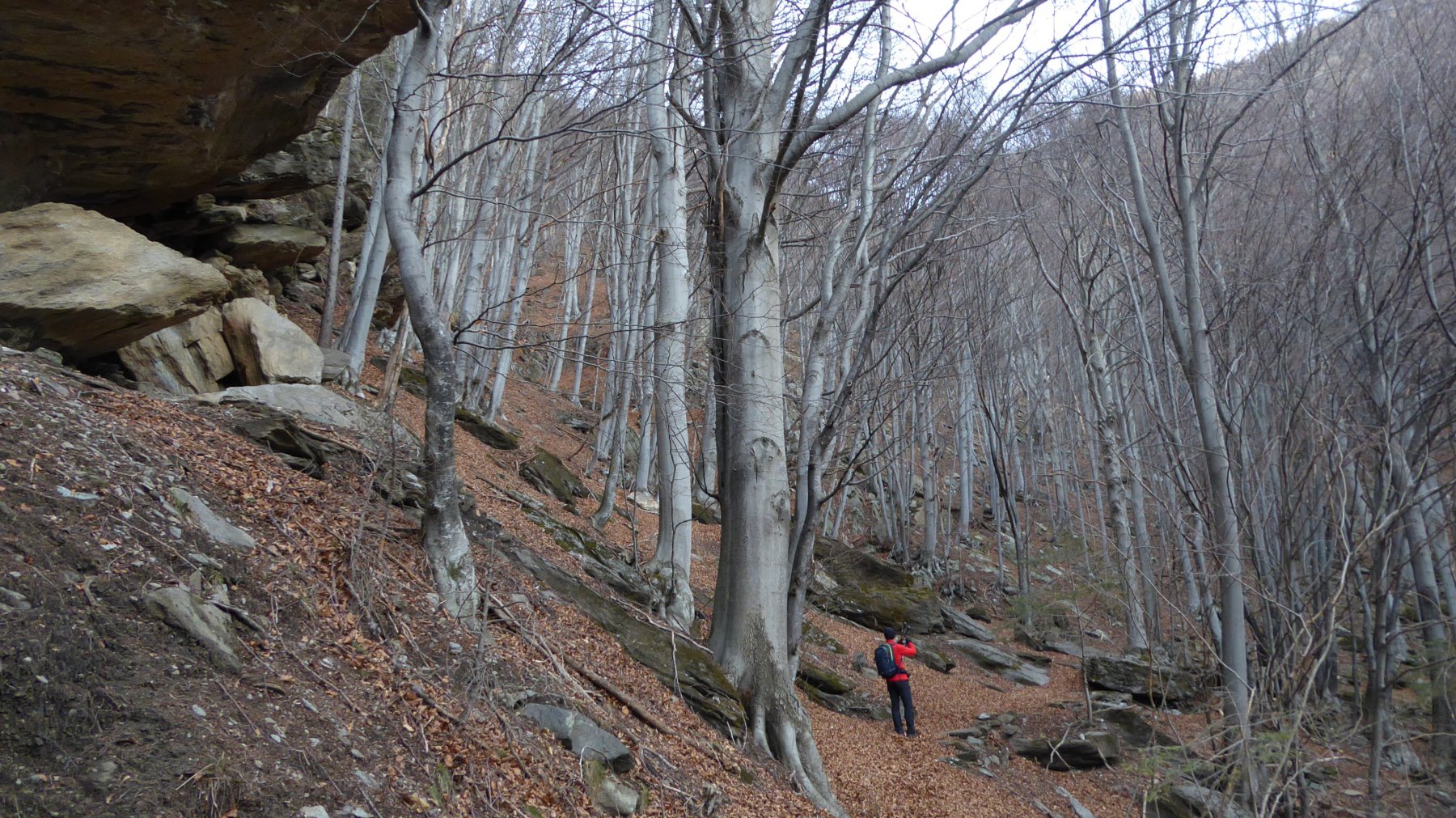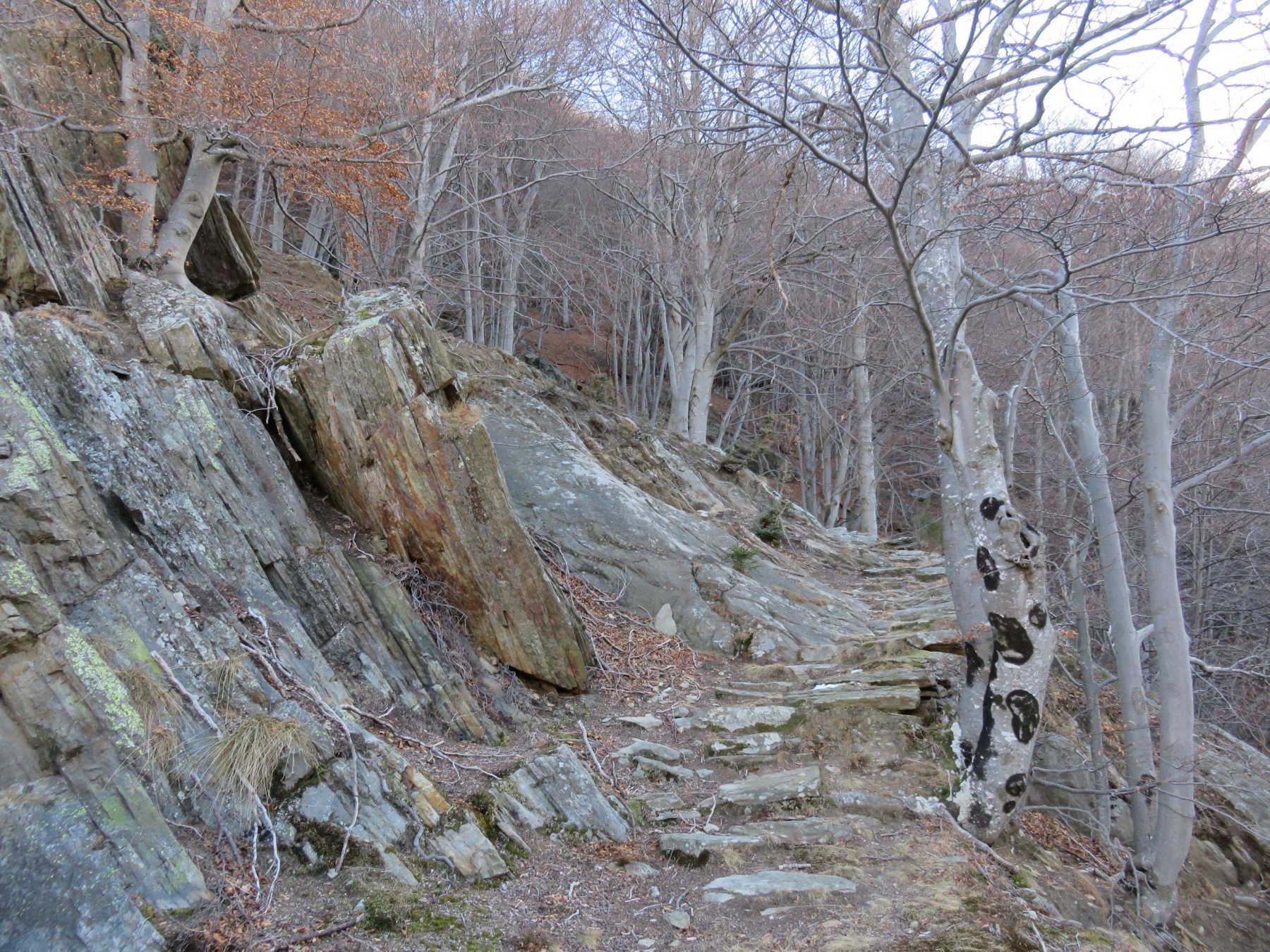 Raggiunta la sponda sx idrografica si risale verso est l’antica e lunga mulattiera che in leggera pendenza in un magnifico bosco di faggi arriva a tiglietto 1247m.