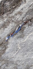 Attenzione alle soste, come descritto sono su chiodi, purtroppo sono davvero messi male, sconsiglio calate in doppia.