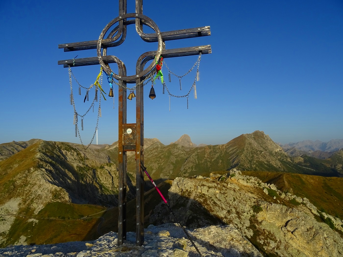 Oggi sono partito dal santuario e approfittando del fresco del mattino ho usato la strada asfaltata fino al colle d’Esischie da dove ho iniziato il saliscendi di cime: rocca Negra (croce recente), cima Reina, P.ta Sibolet, P.ta Tempesta e m. Tibert, ritornando al santuario per la facile cresta, circa 1400 D+ in totale.
