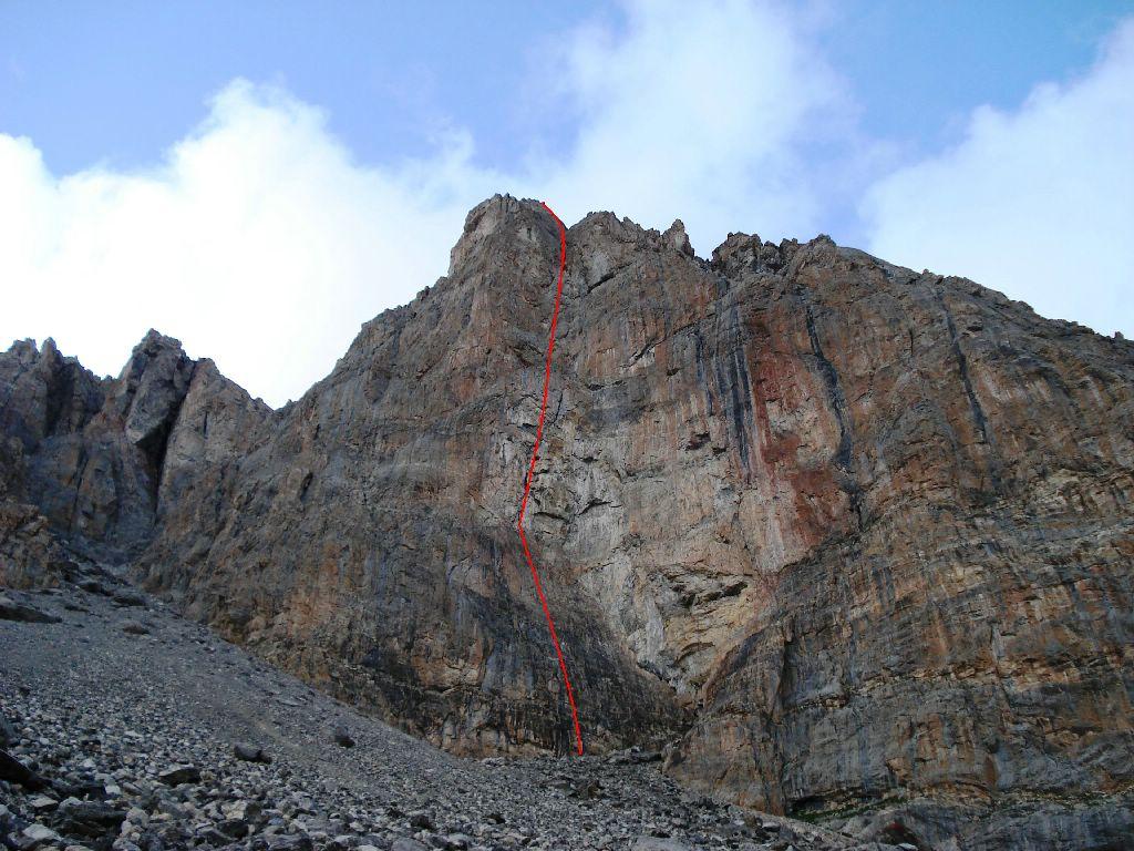 La via attacca a sinistra dell’evidente spaccatura che caratterizza la Tour Termier, nei pressi di un diedro verticale ad una quota indicativa di 2700 m.