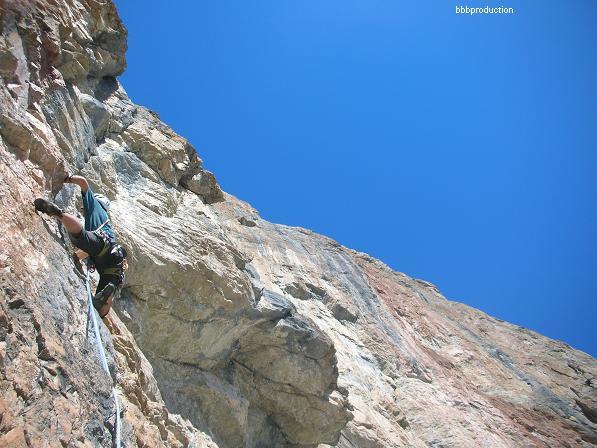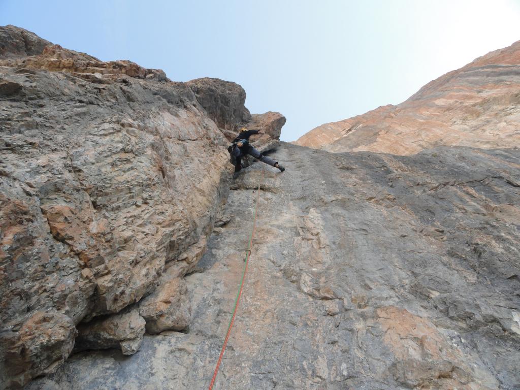 L8: traverso a sinistra,lama da tirare,risalire la placca e serie di diedrini, 6a/b