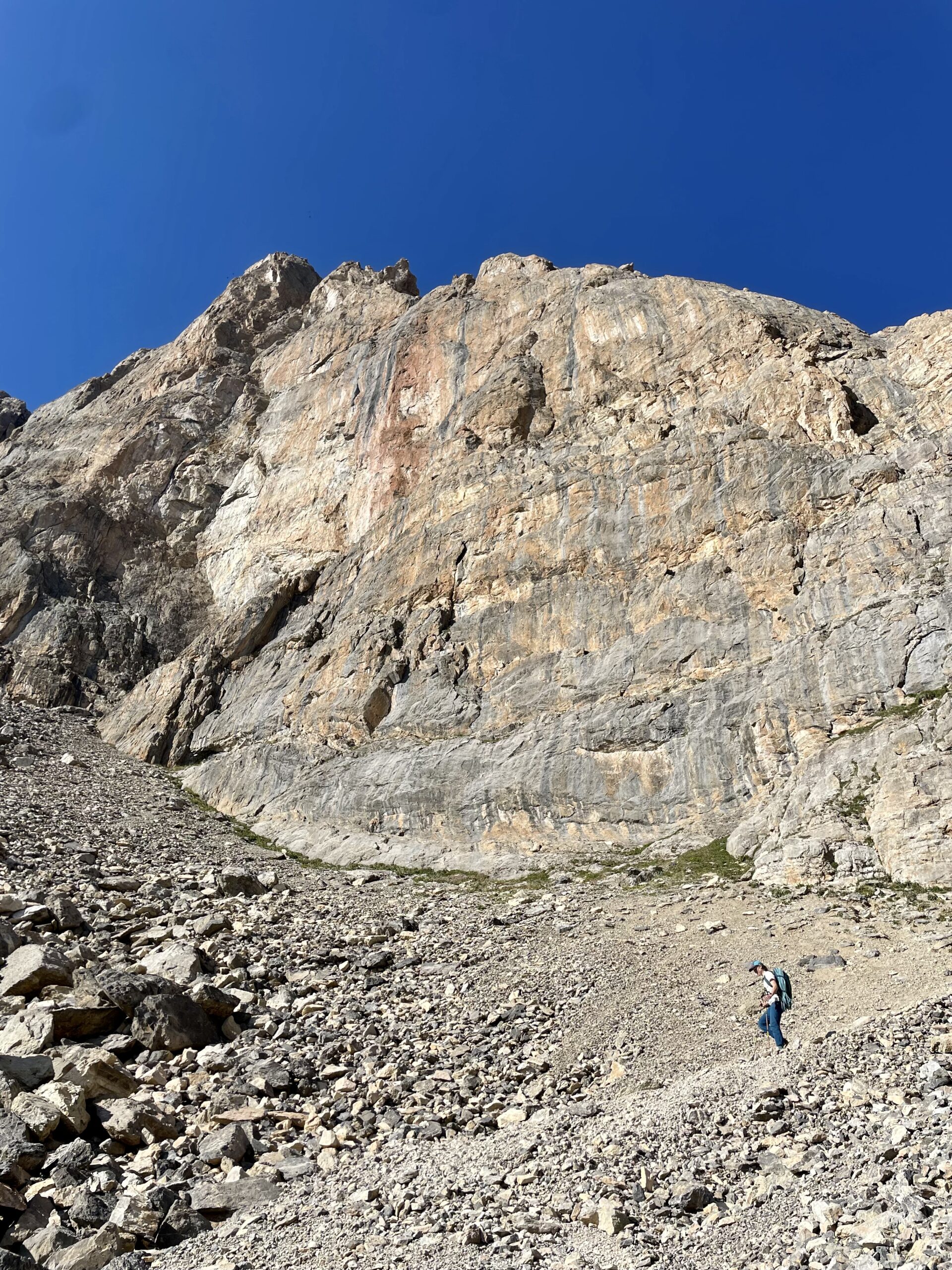 C'è anche un accesso veloce (’50) direttamente dalla strada che sale al Col du Galibier . Poco prima del colle si parcheggia in un ampio spazio su una curva. Da lì si prende il sentiero a mezzacosta sui prati in direzione del traliccio. Lo si segue fino ad arrivare alla parete!