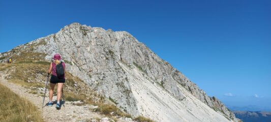 La partenza dal rifugio Sebastiani prevede un dritto per dritto che in poco tempo fa guadagnare un sacco di dislivello. La salita non presenta problemi se non tratti detriti un po’ scivolosi. Incontrato diverse persone. Un bel panorama dalla cima, vale la pena salire!