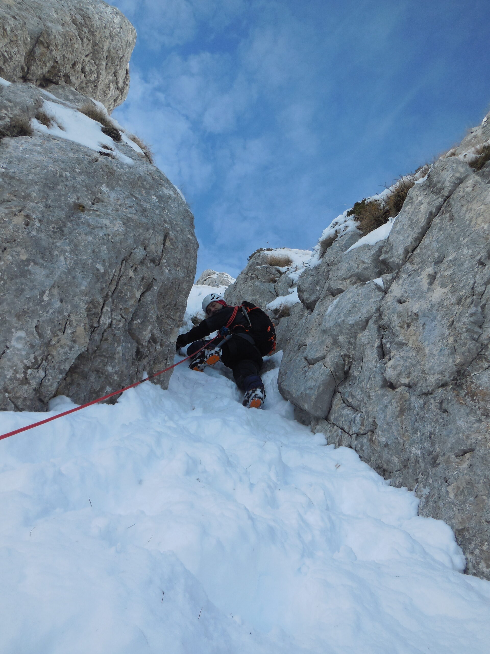Parete Nord-Est del Terminillo in ottime condizioni. Avvicinamento comodo senza nessuna nota particolare. Canale in neve, tracciato e scalettato, condizioni che lo rendono significativamente più facile. Ad oggi, inutili cordini, fittoni e protezioni veloci. I vari chiodi presenti sono tutti nascosti dalla neve.