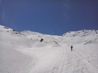 Scappati dal Moncenisio dove imperversava la bufera, siamo giunti in un altro mondo, cielo sereno e assenza di vento. Con l’auto fino alla fine del rettilineo che precede i tornanti per Thuras. Mezz’oretta sci nello zaino, da Thuras neve continua. Giornata fredda, la neve ha tenuto benissimo fino a tardi. Solo un pò sfondoso in discesa l’ultimo bosco sopra Thuras.