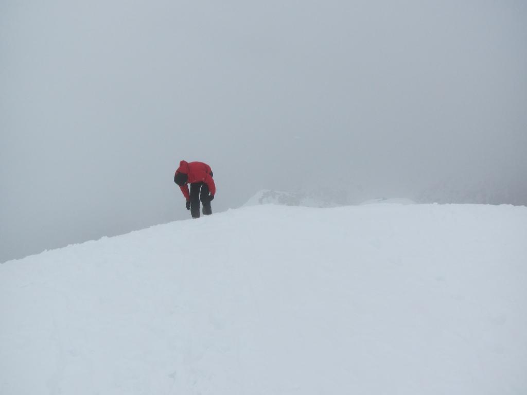 partiti a monte di Ruilles trovato poca neve nel canale sud in alto della neve fino in cima con nebbia e nevischio.