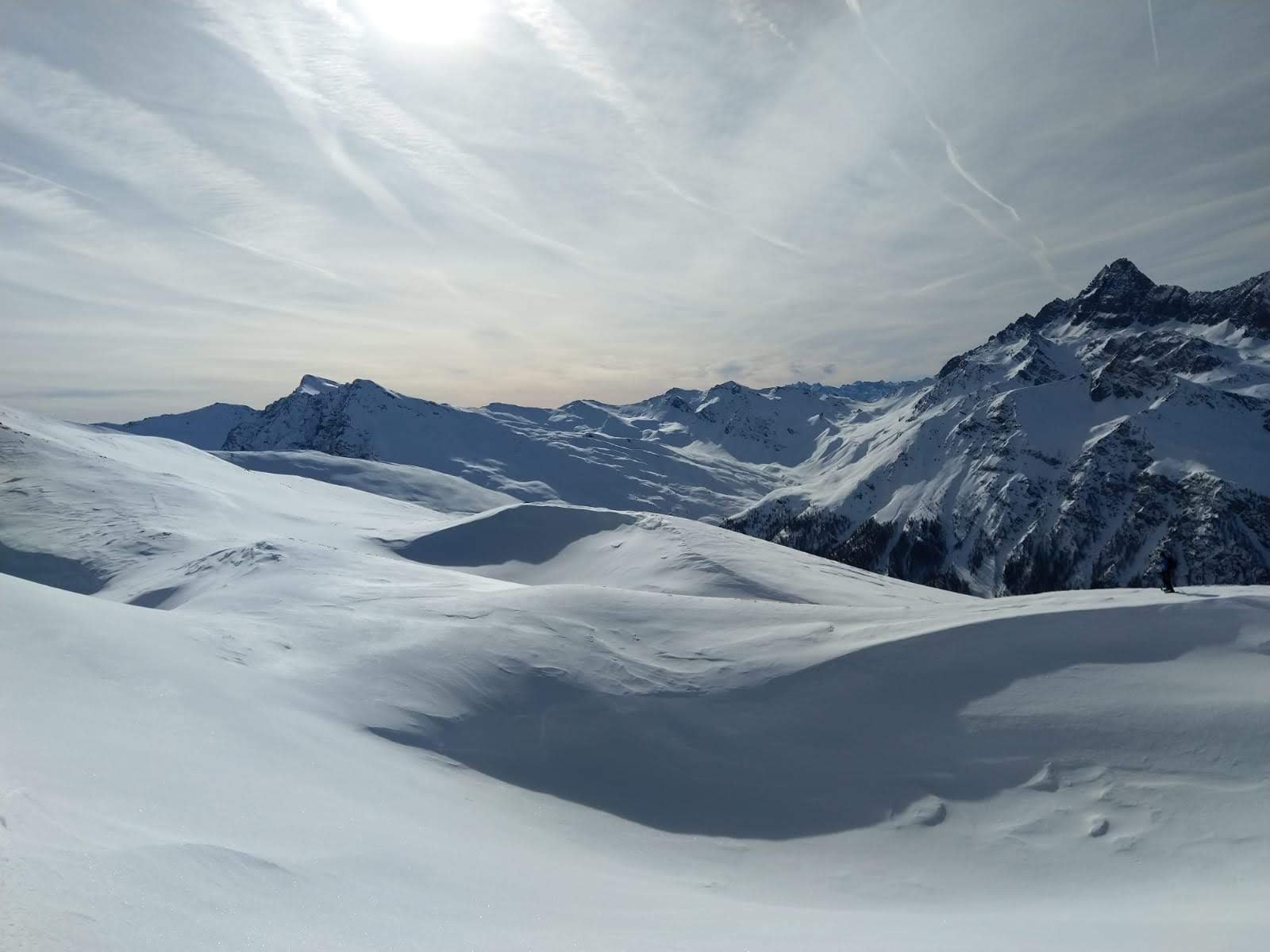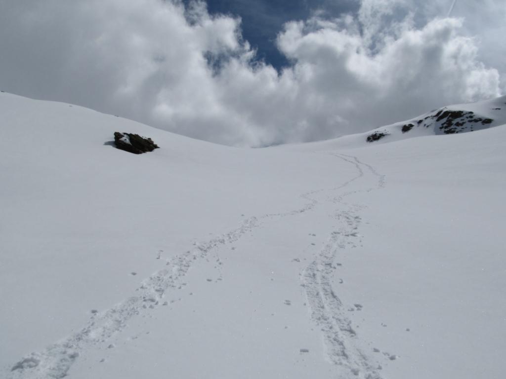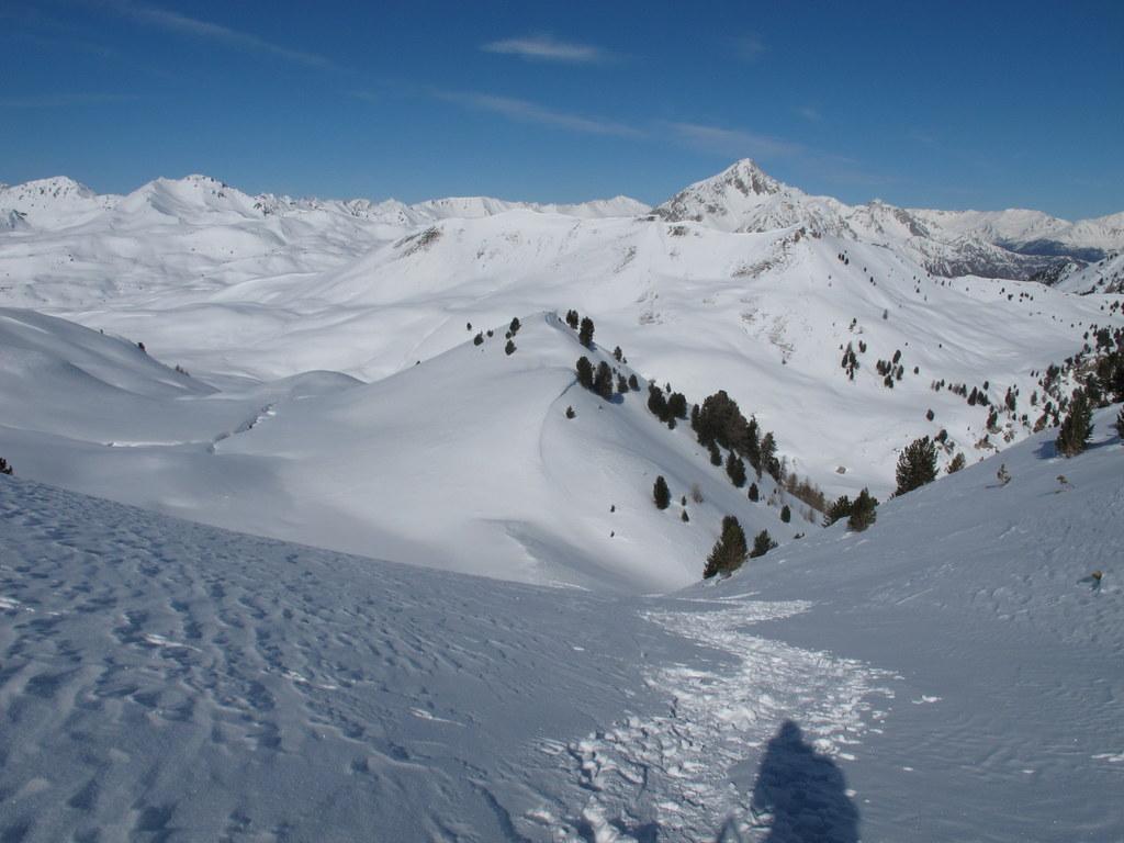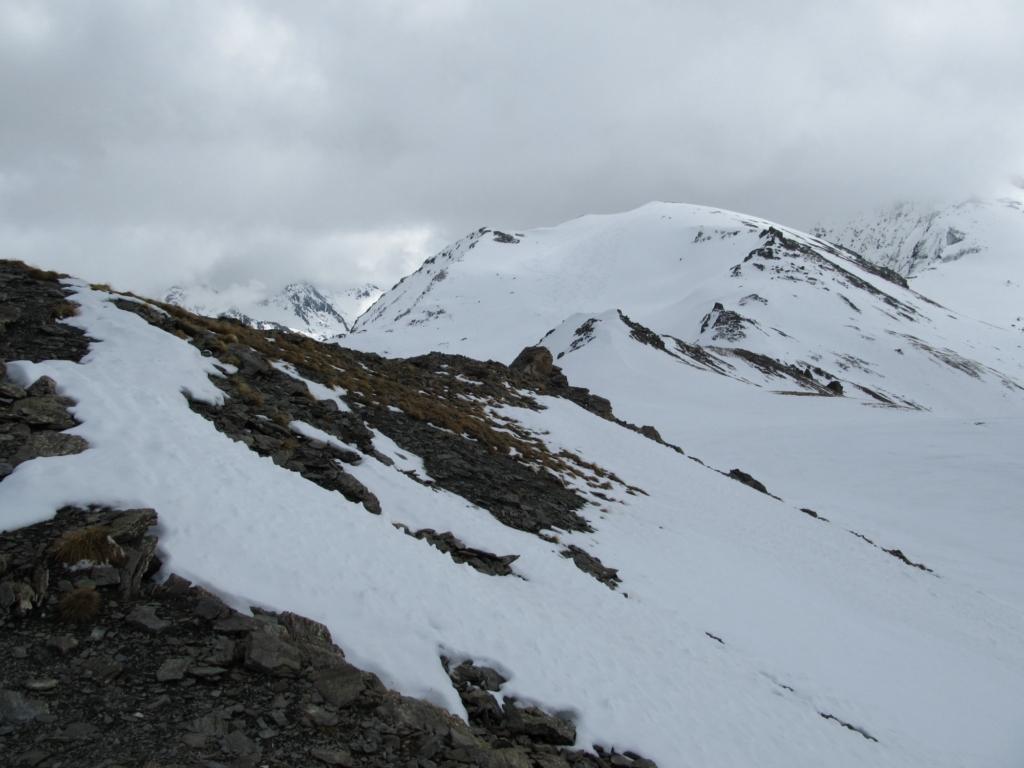 Prestando attenzione alle cornici che precipitano sul lato Val Thuras, ci si mantiene sul filo della dorsale generalmente ampia, aggirando i pochi ostacoli comodamente sul lato francese.