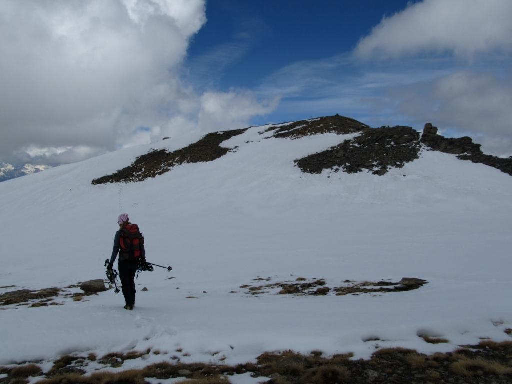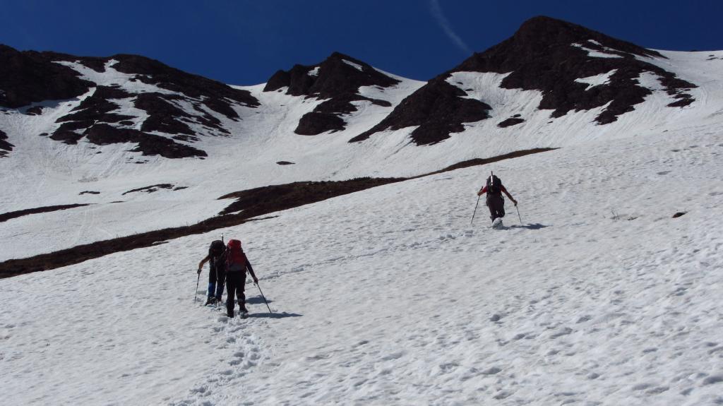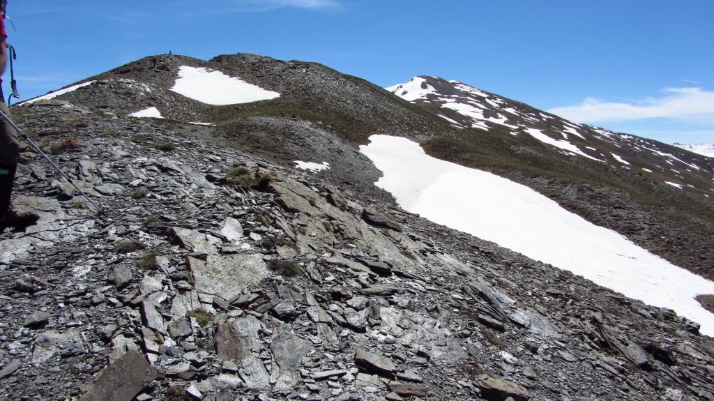 Raggiunto il pianoro superiore, un altro breve pendio permette di accedere al vallone della Dormillouse, prima piegando verso sinistra (passando sotto le pendici della cima Dorlier, avendo a destra la Crete de la Dormillouse), e quindi a destra nei pressi di un dosso, giungendo così al pendio finale che precede la croce di quota 2908 m. E’possibile risalire direttamente il pendio, oppure compiere un semicerchio leggermente più largo verso sinistra, e quindi raggiunto un colletto, dorsale di destra e croce di vetta.