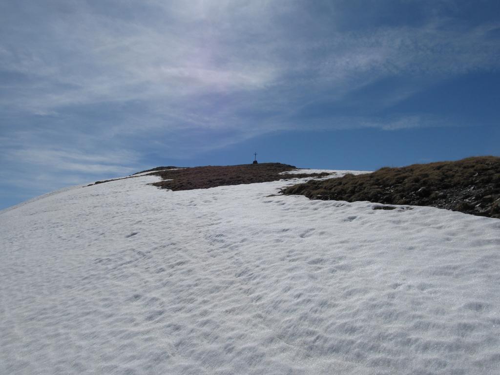 Si scende sotto la croce (tratto spesso senza neve) e si inizia a percorrere la lunga dorsale verso il Terra Nera (ben visibile sullo sfondo).
