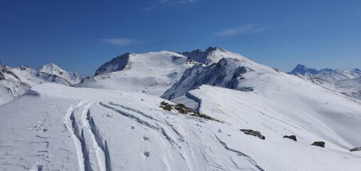 Dalla cima splendida discesa, tutta la prima parte in neve farinosa divertentissima, da fare attenzione solo a qualche pietra affiorante.