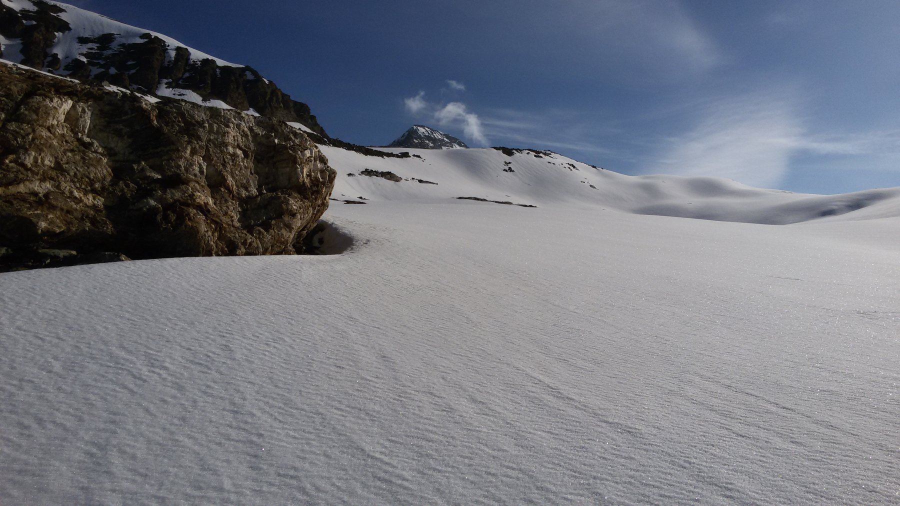In discesa se le condizioni sono buone puntare direttamente la galleria e per bei pendii arrivarci proprio sopra. poi a piedi fino all’ ospizio. ( poco gradevole la galleria).