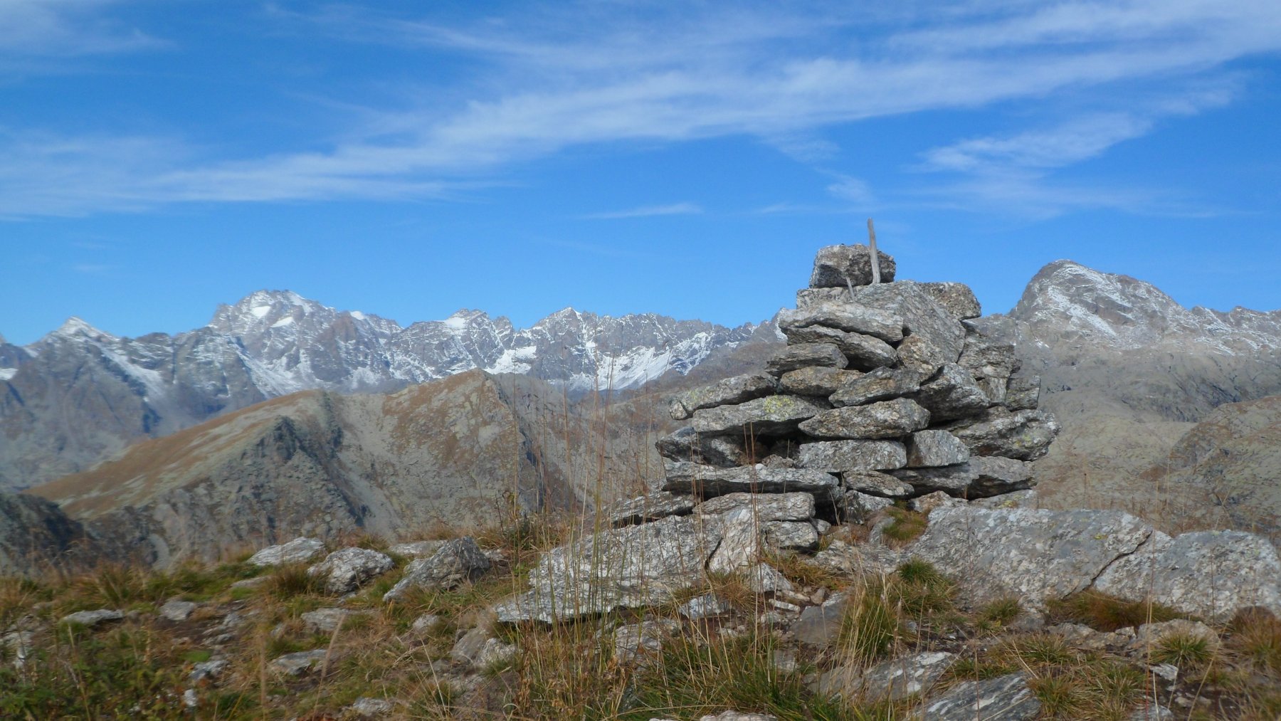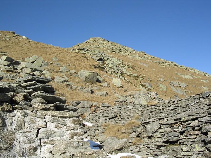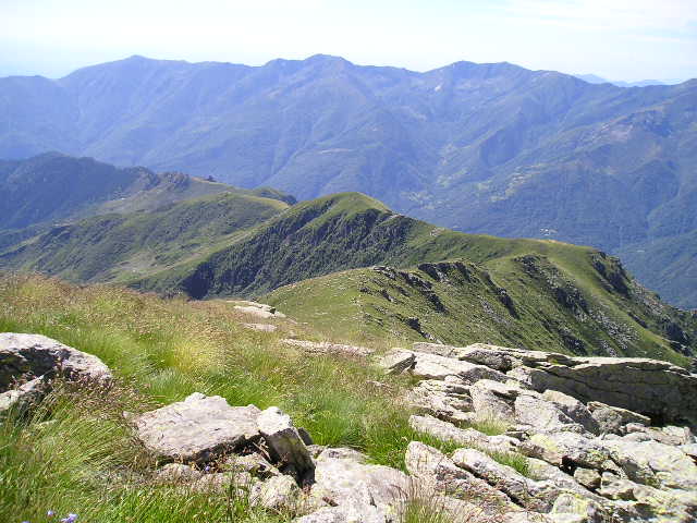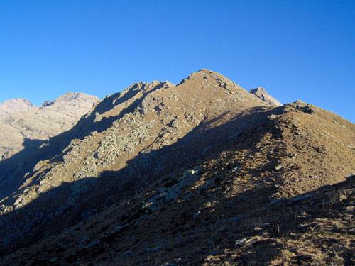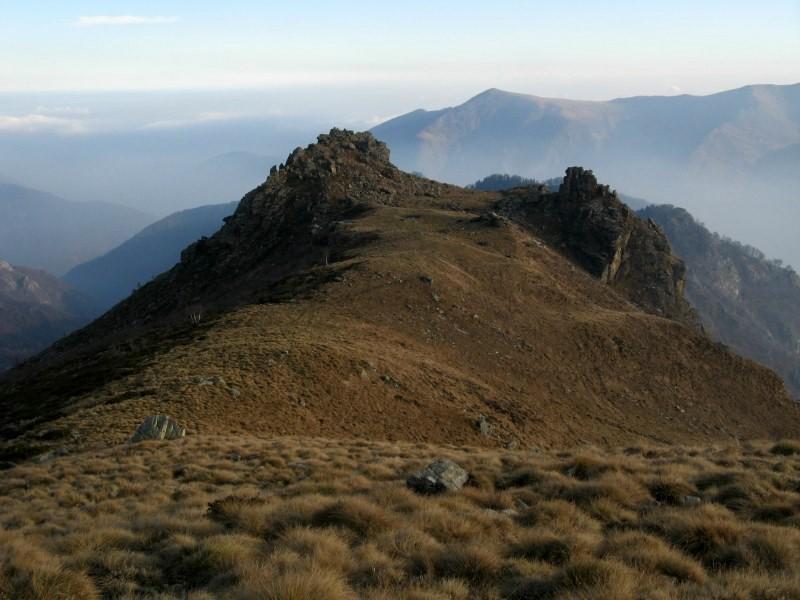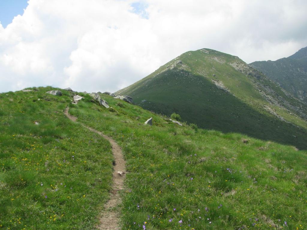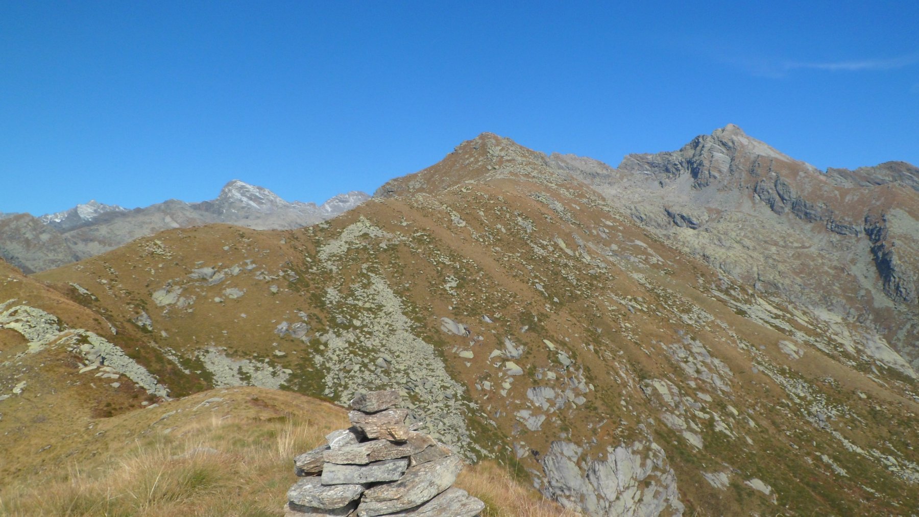 Salendo a destra del colle sempre su buon sentiero con segnavia bianco/rossi si raggiungono in breve i prati sotto la vetta. Con percorso non obbligato si sale velocemente alla vetta del Monte Arzola 2158 m, contraddistinta da un ometto di pietre.