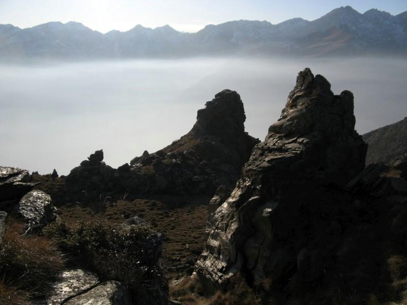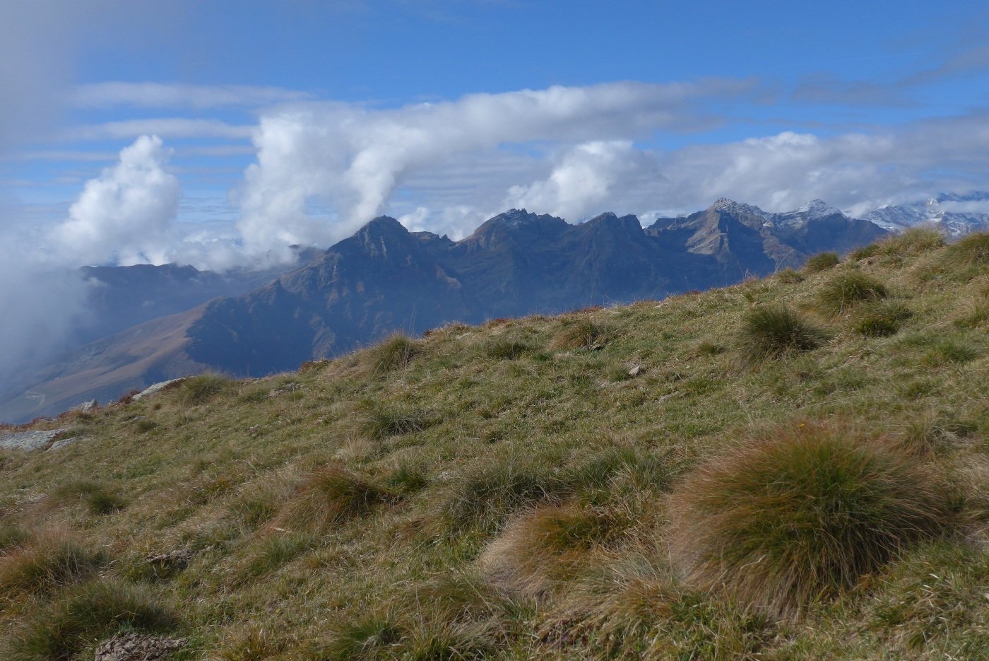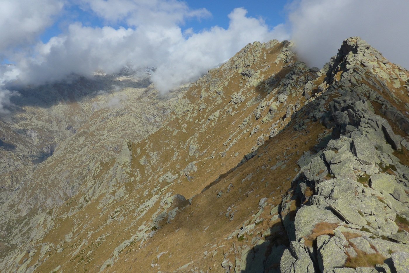 Ora si prosegue sulla lunga e sinuosa dorsale che collega Arzola e Cima Testona, seguendo la traccia che si mantiene leggermente più in basso nella prima parte sul versante sud, fino a raggiungere un colletto con un piccolissimo specchio d’acqua da dove si vede il lago d’Eugio.