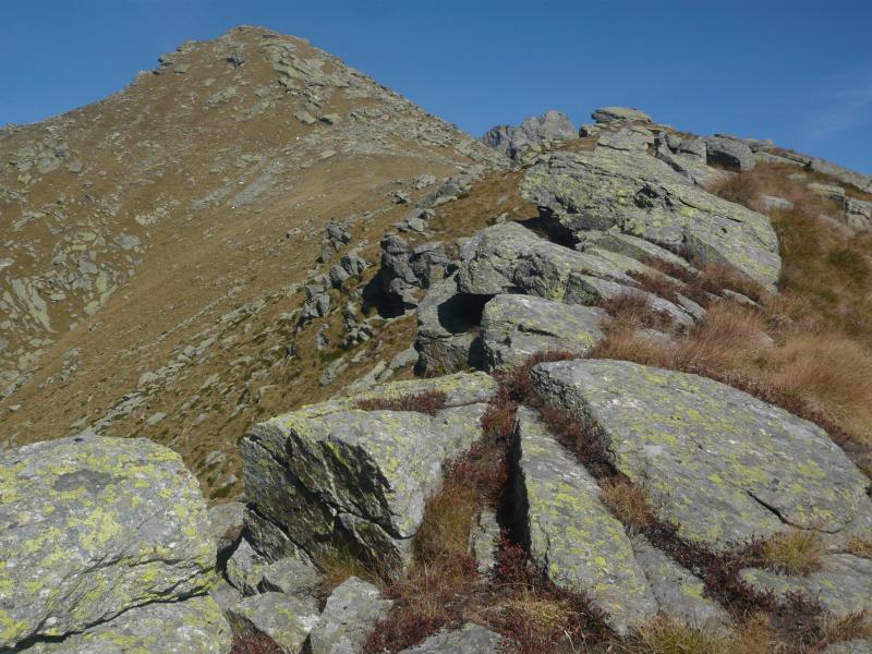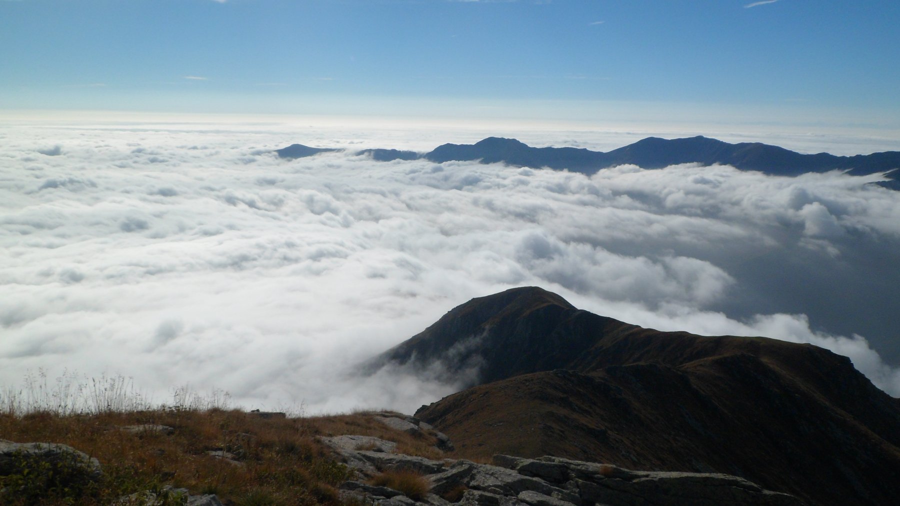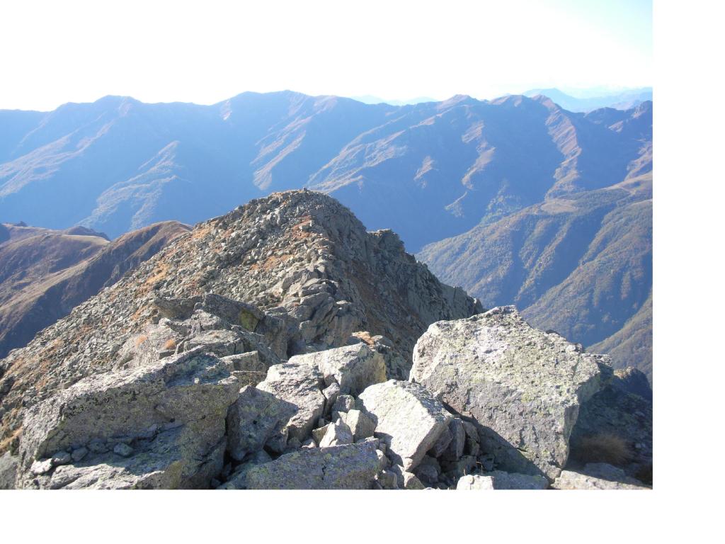 Qui si riprende a salire dolcemente seguendo sempre il costone (tracce) fino a portarsi alla base dell’erta finale del pendio sud di Cima Testona. Seguendo gli ometti tra massi accatastati (non sempre stabili) ed erba si raggiunge la cima senza difficoltà. In caso di neve possono tornare utili i ramponi.