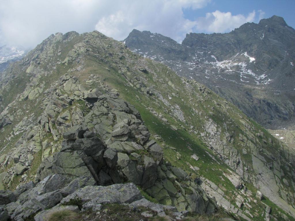 Gran bel giro ad anello pomeridiano, partenza da Posio alle 13,45, risalito il sentiero GTA fino alle baite Arzola, appena prima del piccolo rio ho incontrato un primo gruppo di otto persone, ed un secondo gruppo di tre persone poco prima delle baite, in discesa; dalle baite seguito a sinistra una traccia di sentiero prima su prato poi fra bassa vegetazione, qui ho incontrato altri due turisti in discesa, raggiunto una piccola dorsale che ho seguito in salita fino alla statua del Redentore. Proseguito per Monte Arzola, dove vicino all’ometto vi era una coppia di escursionisti alle prese con la pennichella pomeridiana, ed io sono sgusciato via senza fare il minimo rumore per non disturbare e ho raggiunto la Sella d’Oregge con altre cinque persone in discesa dal sentierino della Testona. Salita verso la Testona e giunto alla base del pendio finale, ho seguito una evidente traccia di animali che và a sinistra e raggiunge la dorsale che scende al sottostante Alpe Giassetto, la traccia continua nel traverso del versante con vari canali, mentre io sono risalito per la dorsale lungo una traccia sempre di animali che raggiunge l’ometto della Cima Testona con a sinistra il triangolino del Cai di Rivarolo Canavese. Attratto dalla vicina punta , quota 2501 del Contrafforte di Cima Testona, ho deciso di raggiungerla, scavalcando i vari blocchi della cresta con facile arrampicata, in qualche tratto un po’ esposta; bel panorama sul sottostante Lago d’Eugio ed i ripidi canali e spuntoni rocciosi del proseguimento della cresta. In discesa sono sceso sul pendio erboso versante Ribordone e con un traverso ho raggiunto la depressione immediatamente prima della Cima Testona, discesa diretta su Alpe Testona, Colletto e su nuova sterrata, raggiunto altri due turisti in discesa all’inizio dei tornanti, giunto all’auto alle 18,00.
