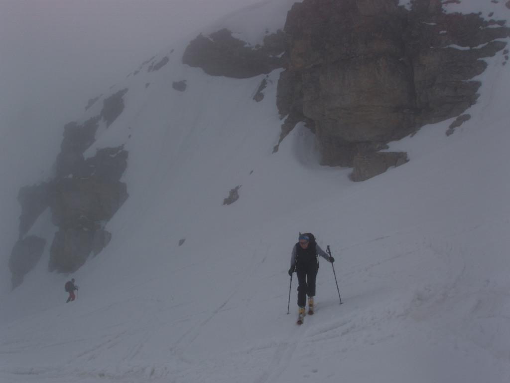 Assenza completa di rigelo penso anche in punta. La neve inizia poco sopra il Pian della Fonderia. Tempo chiuso con nuvole siu quasi tutto l’itinerario, caldo ed umido. Partiti alle 5,30 per altra meta nel Vallone di Tavernette al Pian di Tavernette con tre metri di visibilità abbiamo optato per salire al Lago Peyron e di li al Thabor. Visibilità quasi nulla fin sopra il Colle delle Muande e qualche schiarita nell’ultimo tratto.