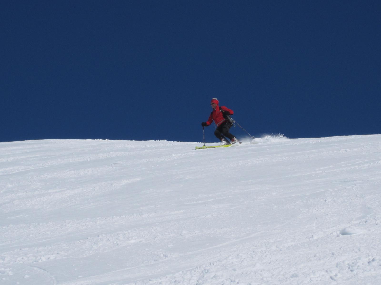 partiti alle 7 con ottimo rigelo notturno, conviene portare gli sci a spalle fino ai pianori sotto il Petit Serù, poi si possono mettere anche se bisogna mettere in conto un breve tratto senza neve sotto il Gran Serù che noi abbiamo percorso con gli sci essendo il terreno sufficientemente morbido; di lì in avanti innevamento ottimo con la parte alta ricoperta da 10 cm di farina morbida caduta di recente.