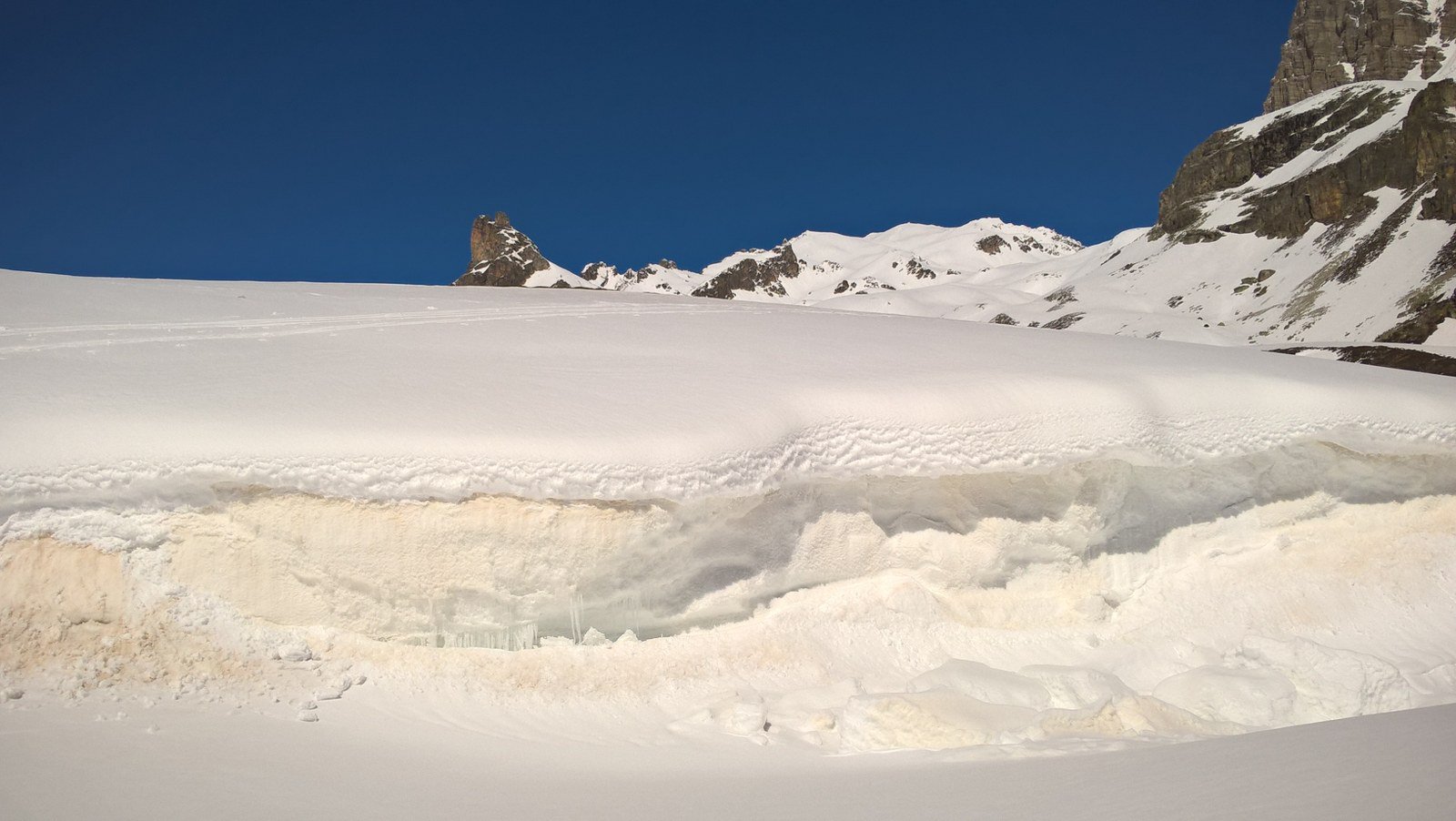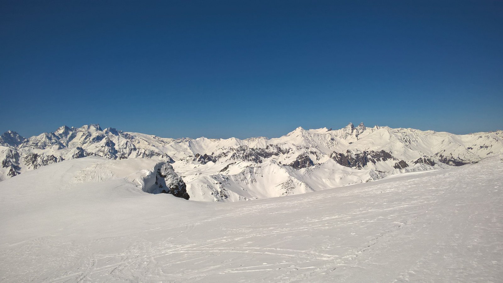 Oggi discreta frequentazione sia dalla Francia che dall’Italia con una quindicina di skialp, io sono sceso tra i primi, verso le 11,15, trovando ancora bella neve ma in fase di umidificazione, il vento che faceva fumare il Thabor al mattino presto era cessato e le temperature erano veramente alte, nella parte bassa bella primaverile.