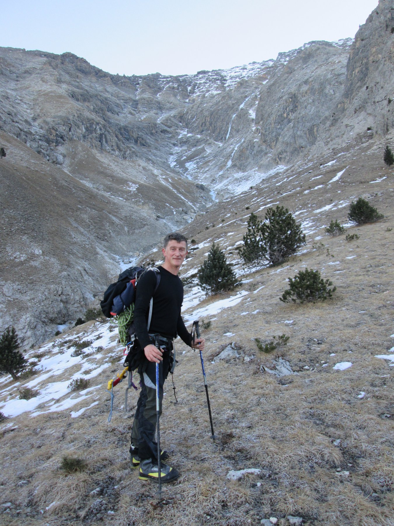 che dire veramente una perla della valle da prendere al volo con queste condizioni secche – e avere i soci che credono ancora all’avventura (si va a vedere !!)cosi siam stati premiati. grande mark come apritore , il buon bruno che come ripiego a fatto da reporter veramente ottimo, salita in 4 tiri e scesi con 3 doppie su ghiaccio,terreni ripidi d’accesso- (nota che con auto siam saliti fino al pont dell asia sotto i tornanti della borgata thuras)—chissà quante ripetizioni ha?