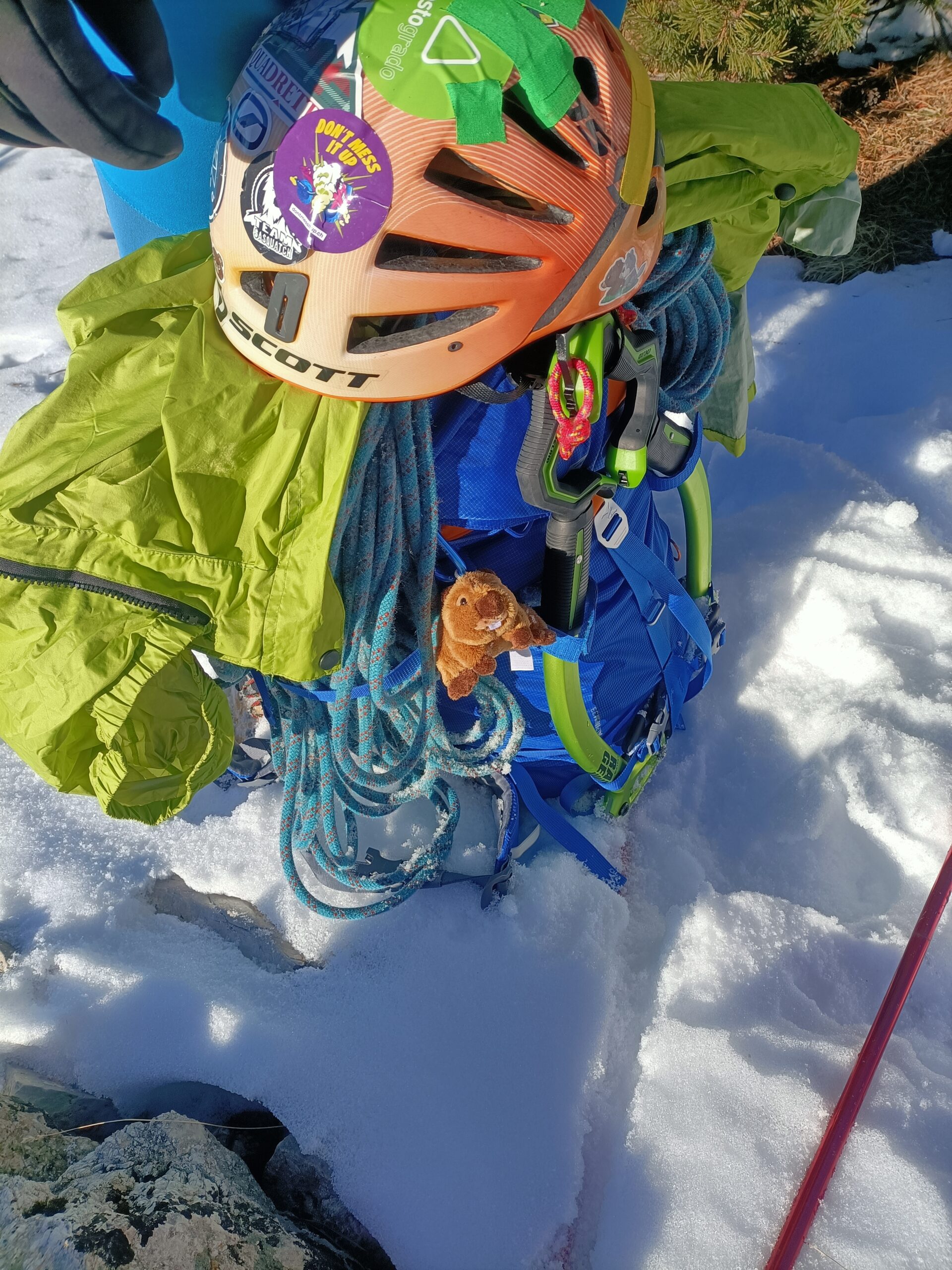 Torniamo qui un anno e pochi giorni dopo. In realtà l’idea era fare il Gully del Boucher, ingolosito da una relazione di una ventina di giorni fa sul gruppo fb Ice climbing cuori di ghiaccio dove diceva che la goulotte era ben formata. Invece al momento la goulotte è assolutamente inesistente, neanche una minima colata di acqua o ghiaccio come invece era presente l’anno scorso. Probabilmente hanno salito una lingua ghiacciata anche oggi presente anche se magretta che rimane appena prima del cascatone di Thuras ma abbastanza più avanti della vera Gully del Boucher.