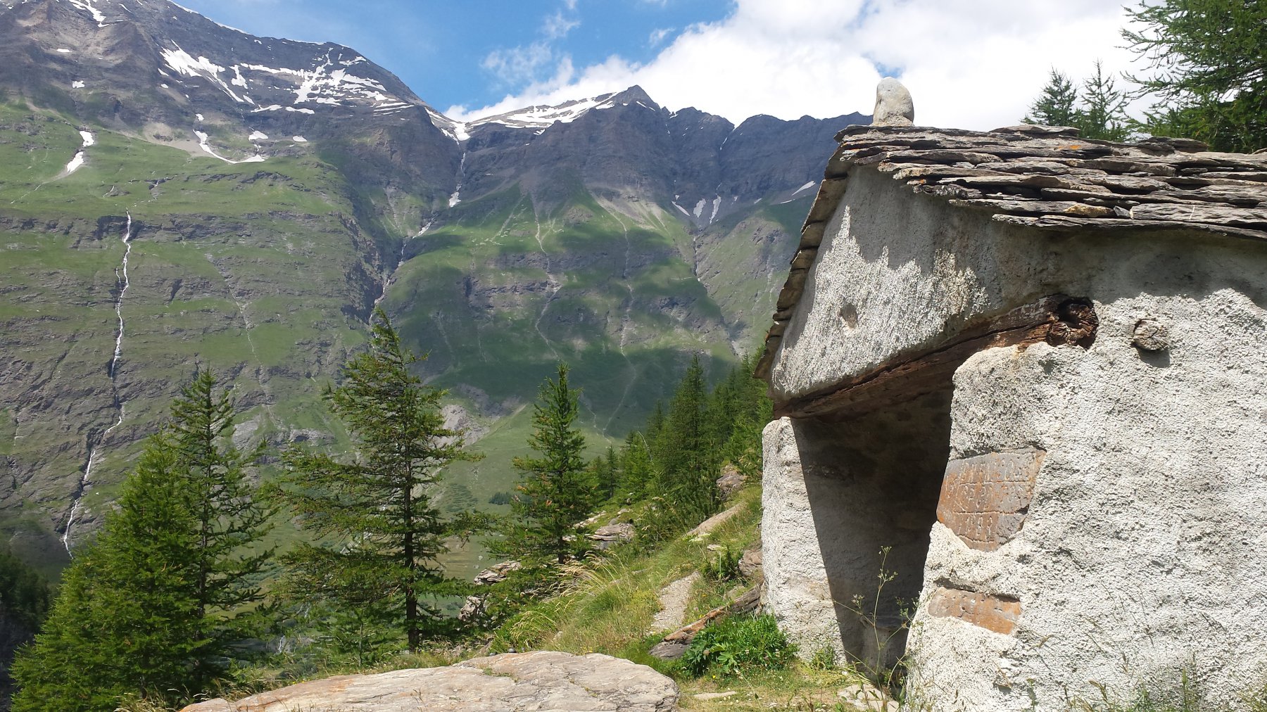 Percorrere la steerrata del vallone del Ribon fino a raggiungere dopo un quarto d’ora l’Oratoire de S.te Anne (grosso pilone/cappelletta posto appena al di sopra della strada, con possibilità di ricovero in caso di maltempo).