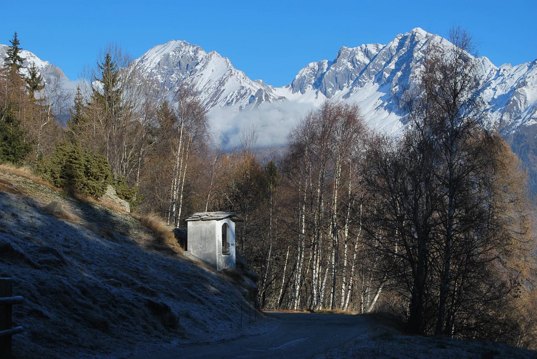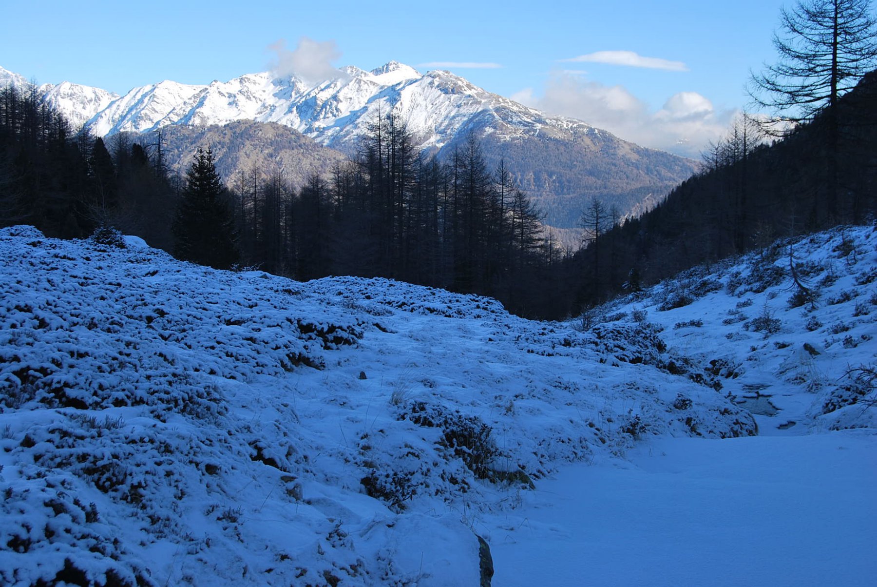 Si prosegue a piedi e, dopo 200 metri sulla sinistra, parte il sentiero n.11 che porta alla localita’ Lazey. (1625 metri)
