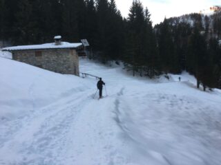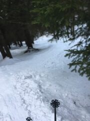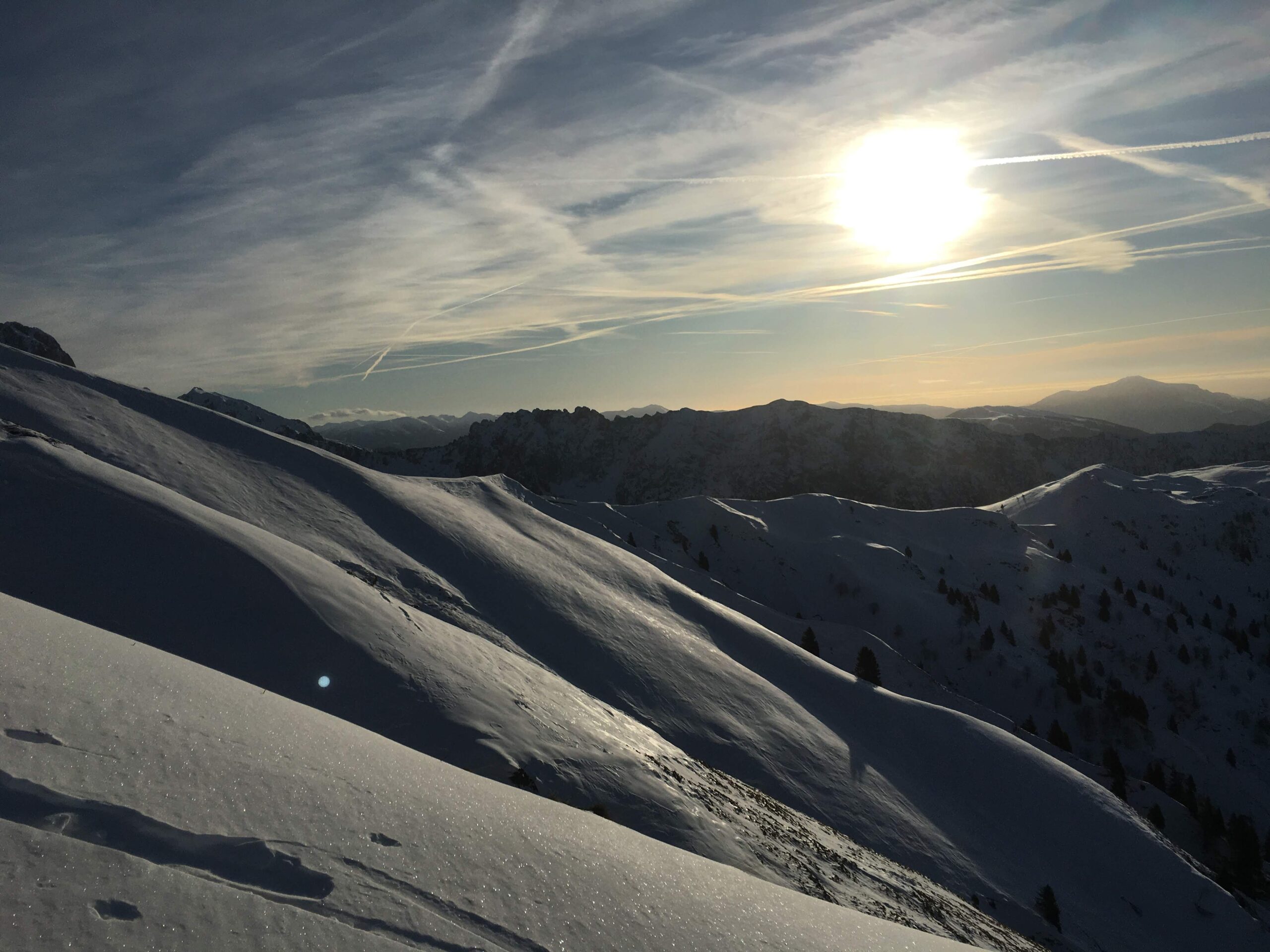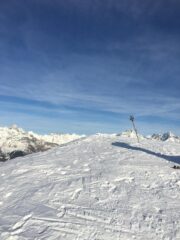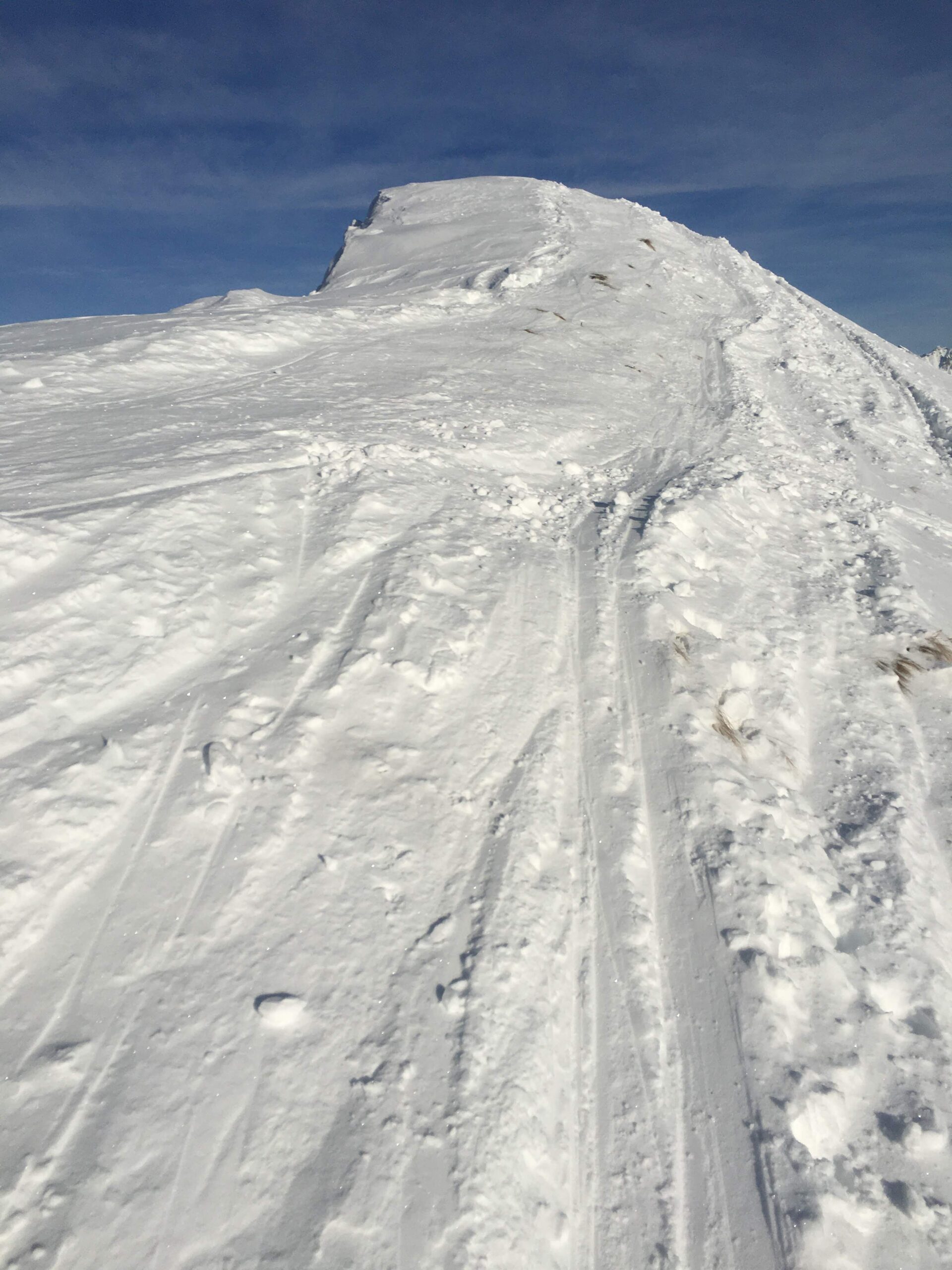 Un po’ duri gli ultimi 30 metri ma si fanno senza coltelli. Salito al Benfit. Discesa su neve tritata indurita del freddo. Preso per errore la nera in discesa non battuta e piena di sassi (sono riuscito a battezzare le solette nonostante il periodo di neve favorevole!). Tantissima gente in salita mentre scendevo alle dieci.