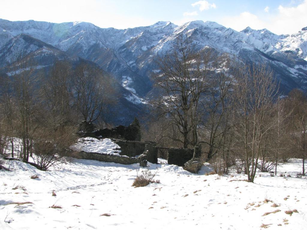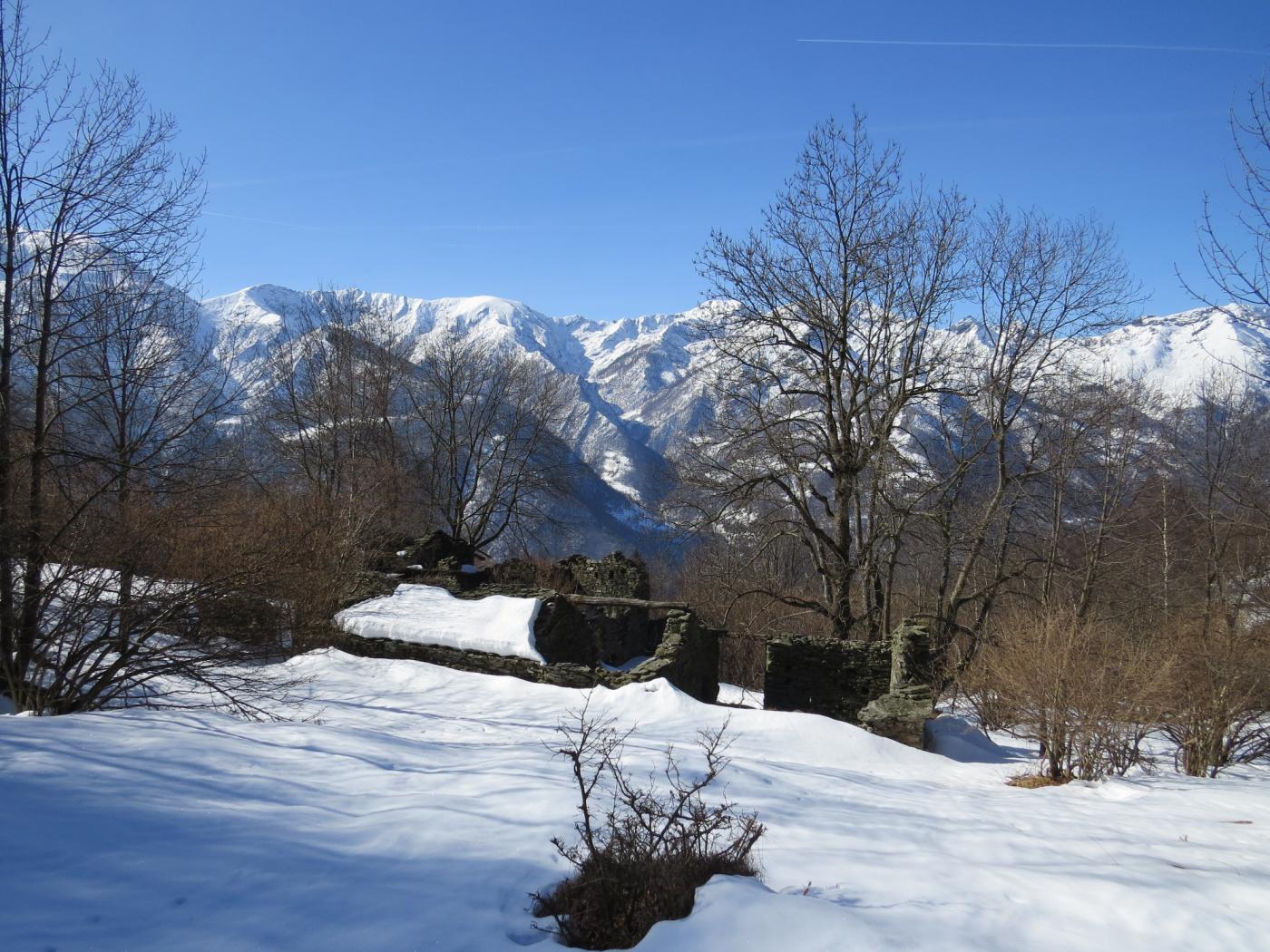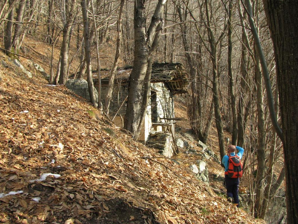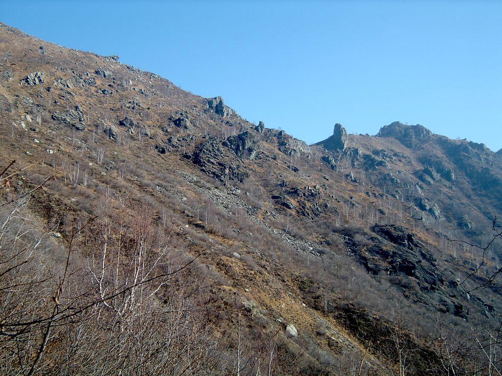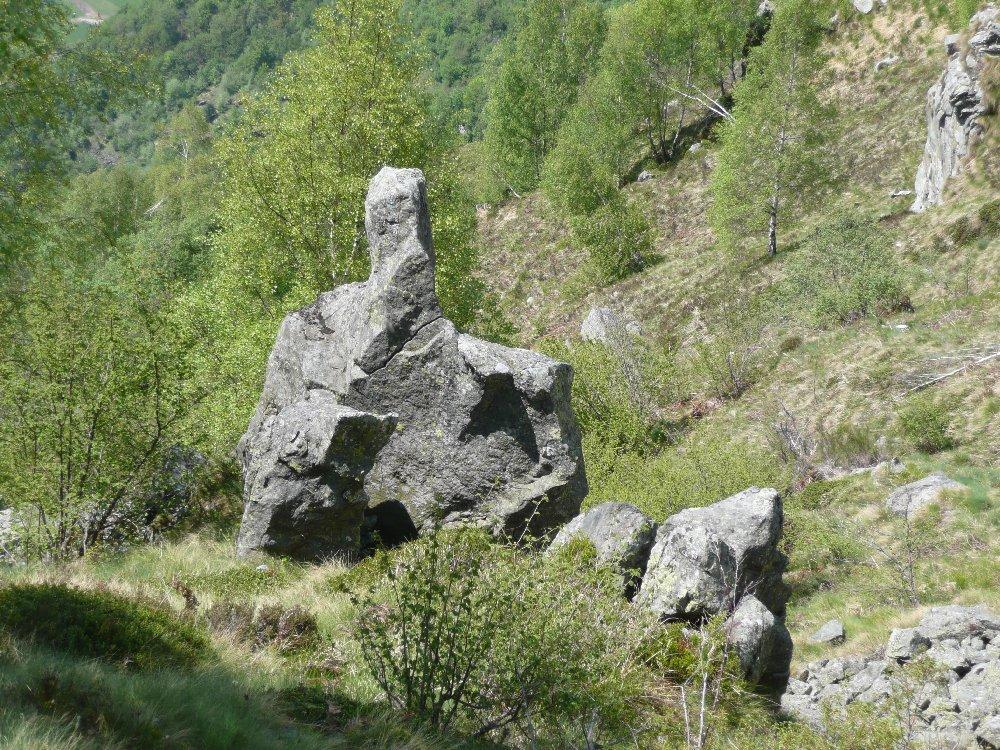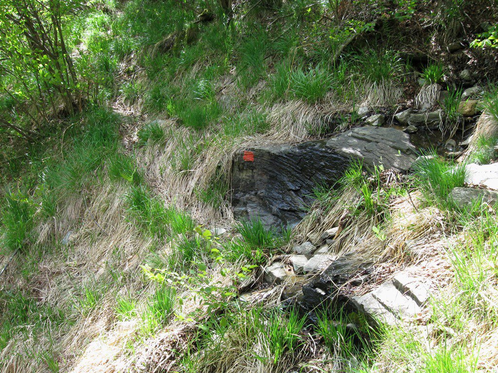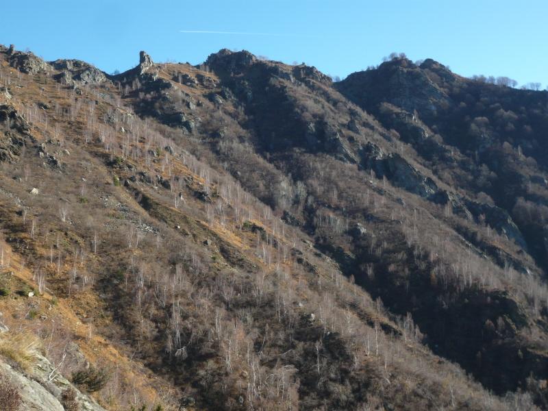il sentiero, ritracciato nell’estate 2007, risale il ripido versante, passando nei pressi di un pannello ripetitore e di un traliccio in ferro della ex cava, tutti e due visibili da Locana.