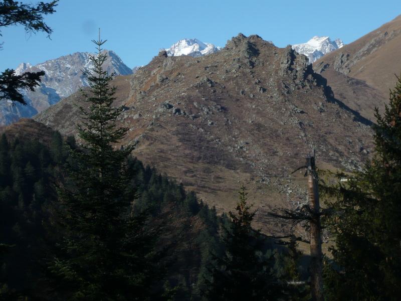 A destra del colle, su uno spuntone roccioso, vi è posta una croce in legno ben visibile dal sentiero di salita, questo spuntone in zona è conosciuto come “Dente della Vecchia” per la sua caratteristica forma. Discesa per la stessa via di salita. Dal colle si prosegue sulla cresta a destra e tra vari saliscendi si tocca la Bocchetta Lanteu 1565 m e poi la Punta della Croce 1606 m e la vicina Cima Tiriol 1601 m. Da qui si scende alla bocchetta di Tirolo 1461 m e su ripida traccia a Tirolo Superiore 1292 m si scende stando a destra del rio Civrer e ravanando un po’, si trovano gli alpeggi di Campit 1250 m e Pian Zut 1197 m. Ora il sentiero si fa più visibile e passa il rudere dell’Alpe Grangia 1082 m, poi Pianazzolo Superiore e Inferiore. Si continua in discesa a sinistra. attraversando il rio Civrer e si trova sulla sponda opposta la mulattiera che scende a Bardonetto Inferiore.
