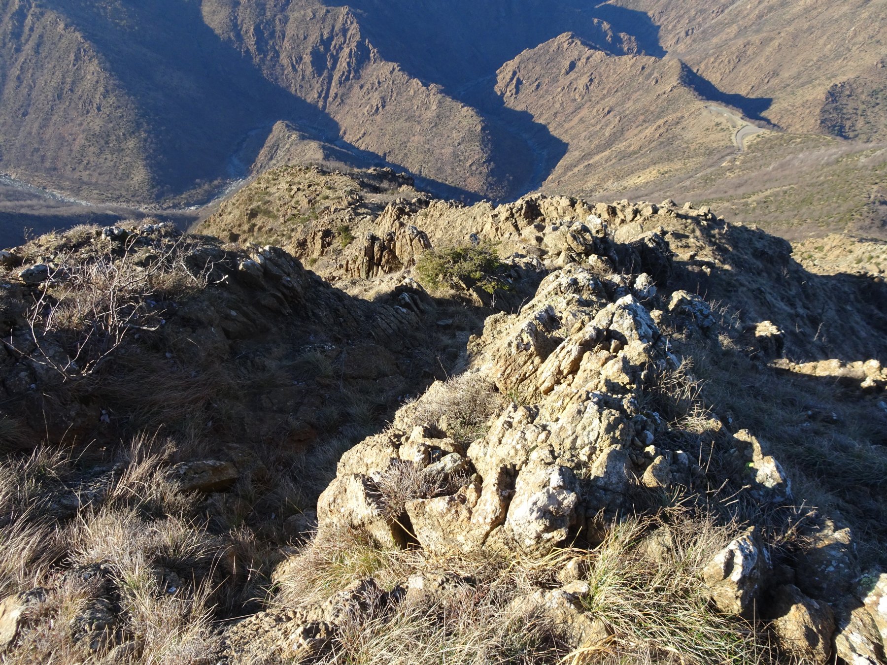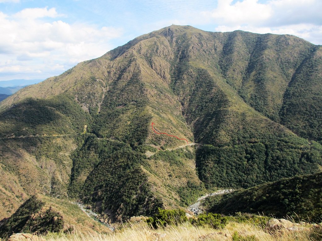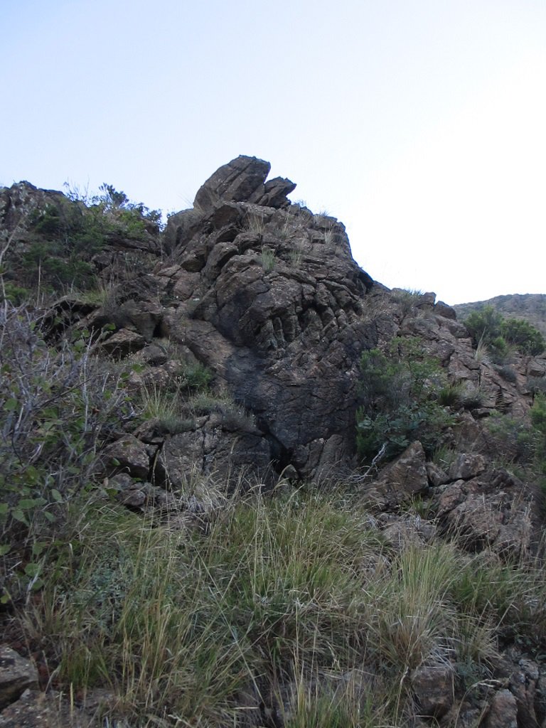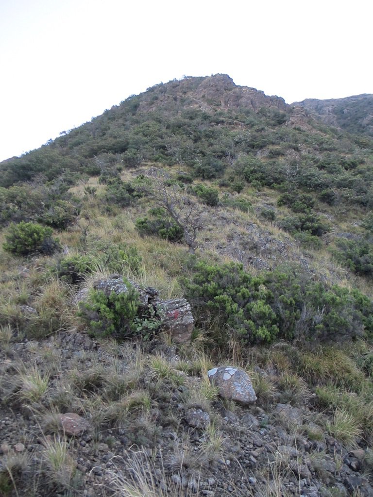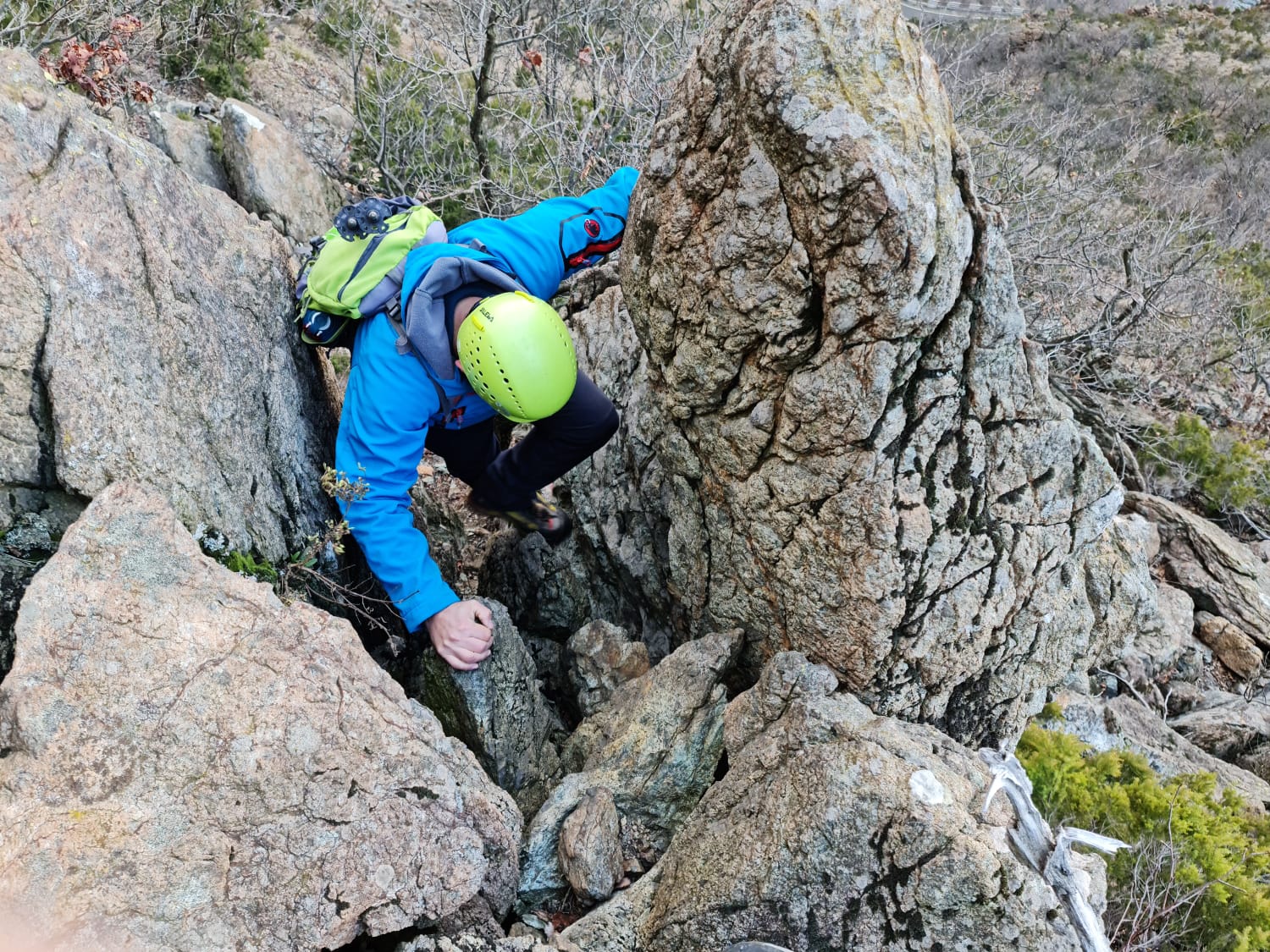 La via è marcata con frecce rosse ed ometti e si muove tra rocce ed arbusti. Qualsiasi roccione con relativa difficoltà è affrontabile o aggirabile.