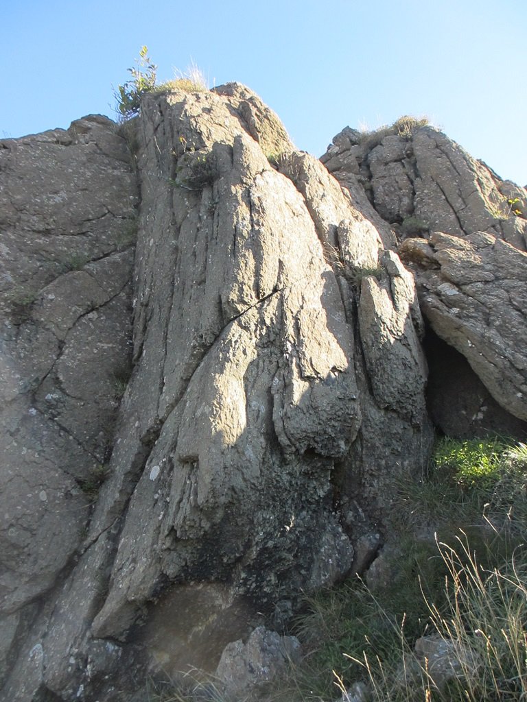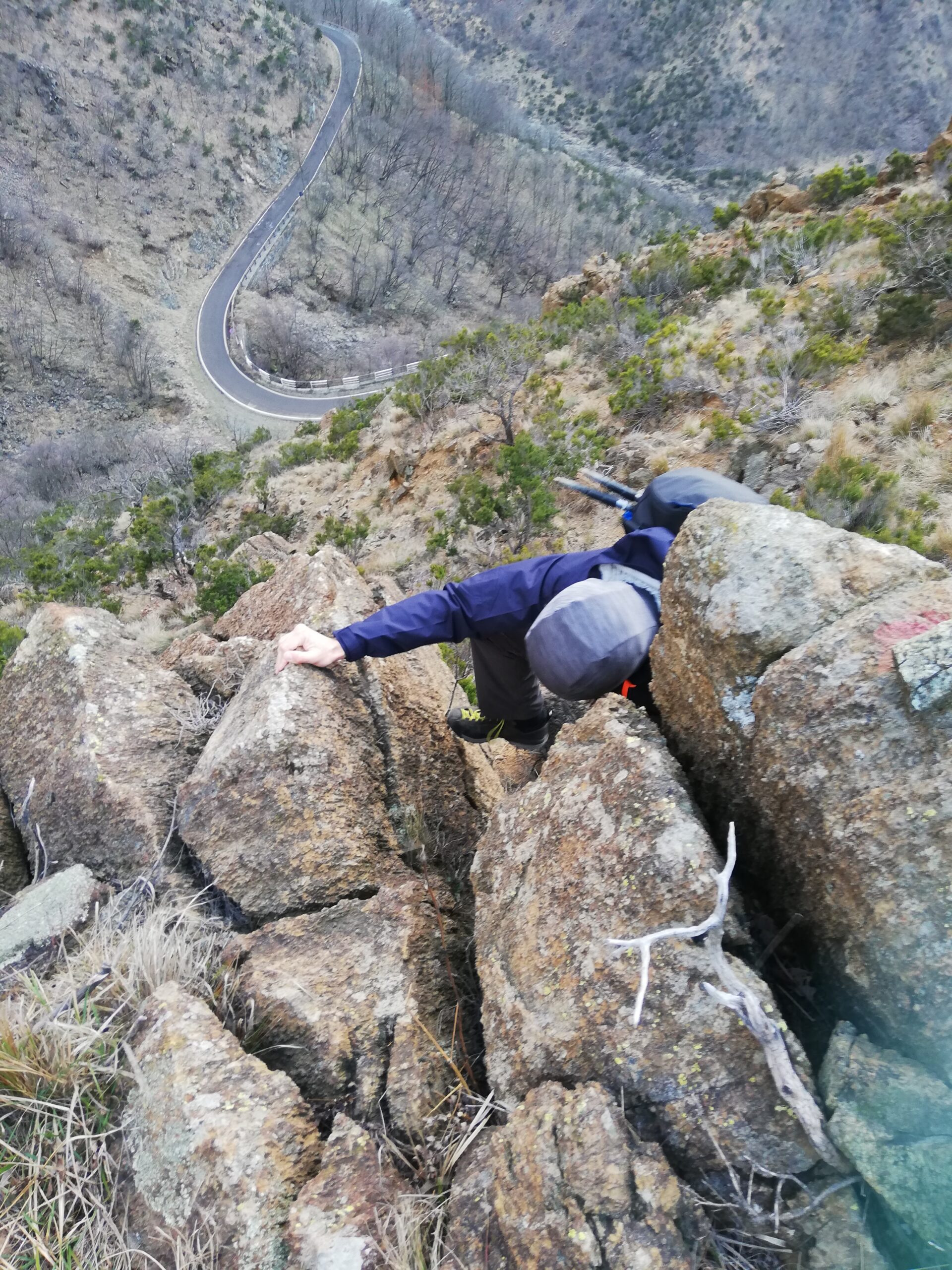 Ci si arrampica in maniera più o meno continuativa dalla macchina alla cima, con qualche raccordino erboso.