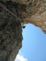E’ una via moderna, ma dal carattere alpinistico. Pochi fix o chiodi lungo i tiri, ad esclusione della lunghezza chiave. Portare una serie completa di friend, fino al giallo camalot, cordini per allungare le protezioni e per le clessidre. Le soste sono tutte attrezzate anche per una eventuale ritirata in corda doppia (Sconsigliata). Roccia da buona a ottima, attenzione ai detriti presenti lungo le cenge e fuori dalla linea di salita.
