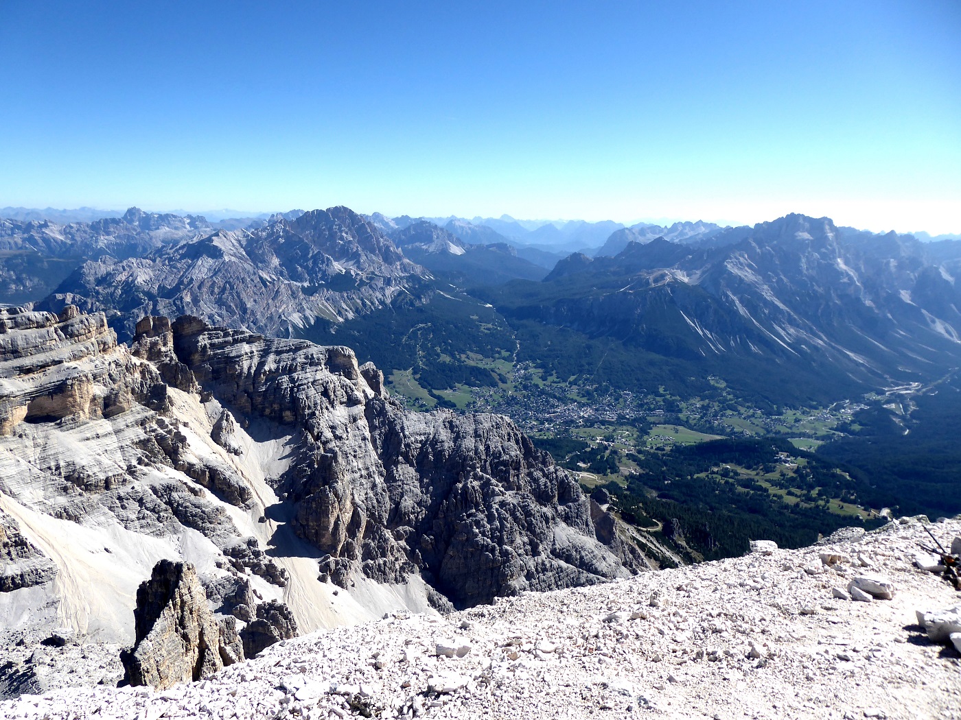 Partiti dal Rifugio Dibona dove abbiamo pernottato (più che un Rifugio un alberghetto, però con tariffa quasi da Rifugio e dove siamo stati veramente molto bene!) dopo la Kaiserjager al Piccolo Lagazuoi. Fino al Rifugio Giussani si sale facilmente su ampio sentiero. La vista della Via Normale dal Giussani, però, è abbastanza scoraggiante. In effetti il percorso, anche se privo di vere difficoltà, soprattutto in salita è piuttosto laborioso. Intanto per il terreno, veramente poco stabile, caratterizzato da ghiaioni scivolosi con molto detrito sulle rocce. Poi perché non c’è una sola traccia ma molte che si intersecano tra loro e, non da meno, i segnavia blu che dovrebbero essere seguiti, spesso non si trovano perché il pendio cambia aspetto molto frequentemente (così ci è stato detto da un’escursionista locale)! Senza parlare dell’infinità di ometti che, alla fine, complicano solo le cose. Discesa più semplice perché, ovviamente, dall’alto si intuiscono meglio i passaggi migliori. Tratto finale dalla spalla non breve ed abbastanza faticoso anche se su terreno più facile. Giornata veramente spaziale, senza una nuvola, anche se purtroppo in vetta vento fortissimo e freddo che non ci ha consentito di goderci la cima. Dalla cima panorama letteralmente infinito! Molti altri escursionisti e ferratisti in arrivo dalla Lipella. Vista la presenza di molte persone e la tipologia di terreno noi abbiamo preferito indossare il caschetto. A prima vista potrebbe sembrare superfluo ma, in effetti, mentre eravamo in discesa, qualcuno ha scaricato un po’ di sassi! Abbiamo poi trascorso la notte al Giussani per poter affrontare riposati il lungo viaggio di ritorno. Rifugio Giussani molto bello ed ottimo trattamento. Moltissimi camosci in zona. Con Fausto e Michele.