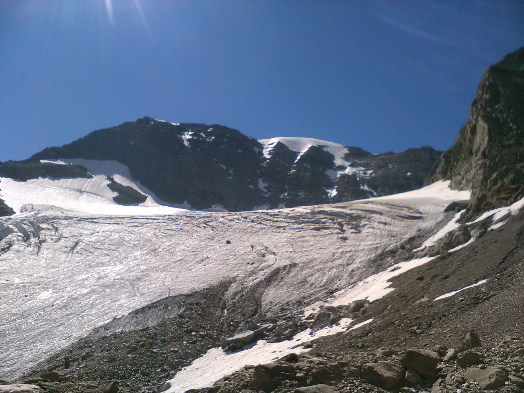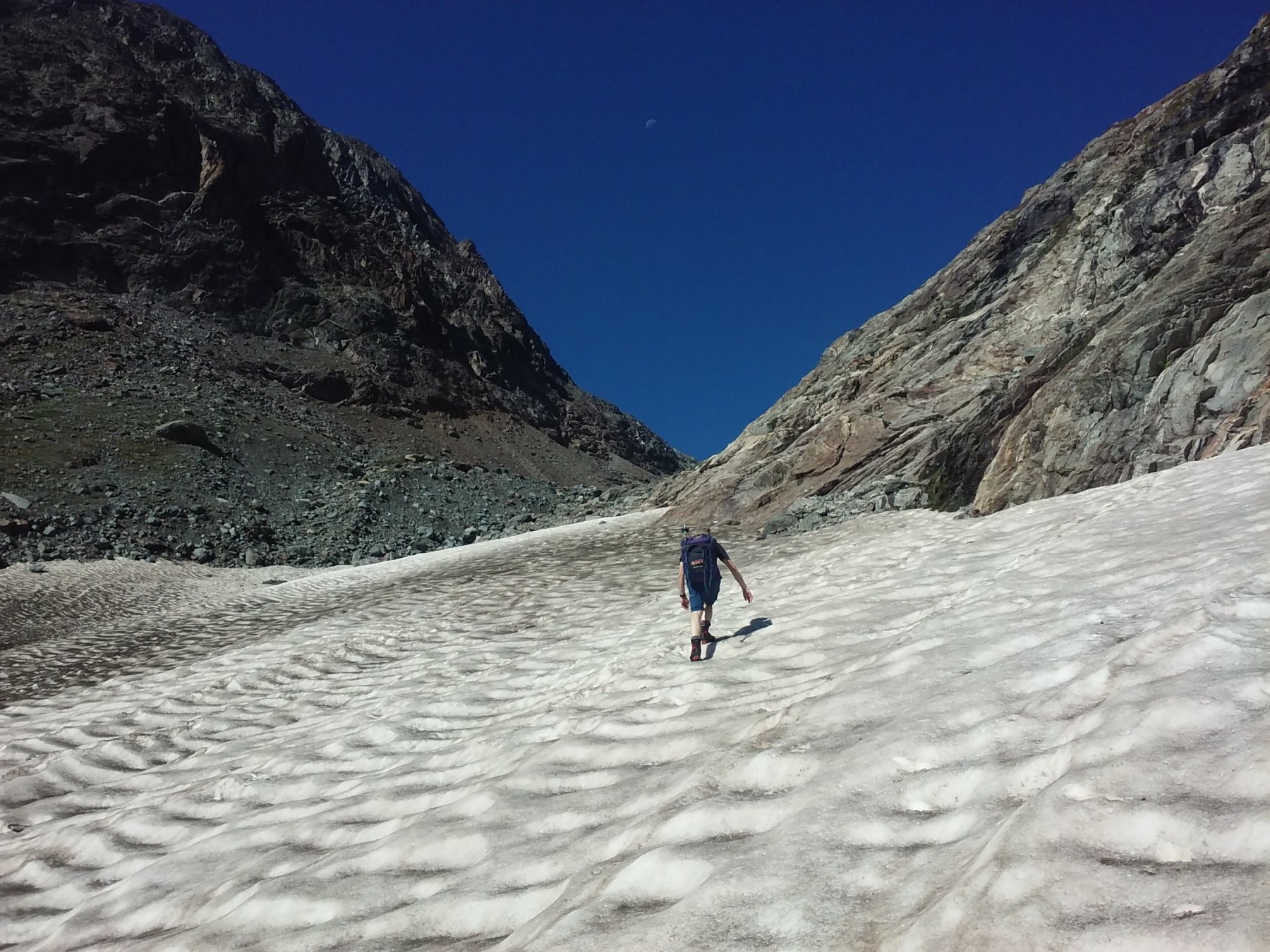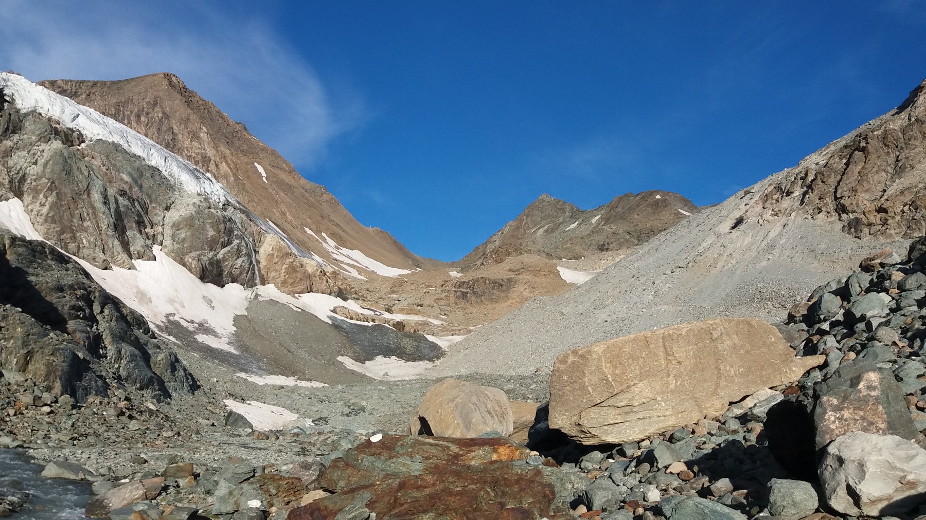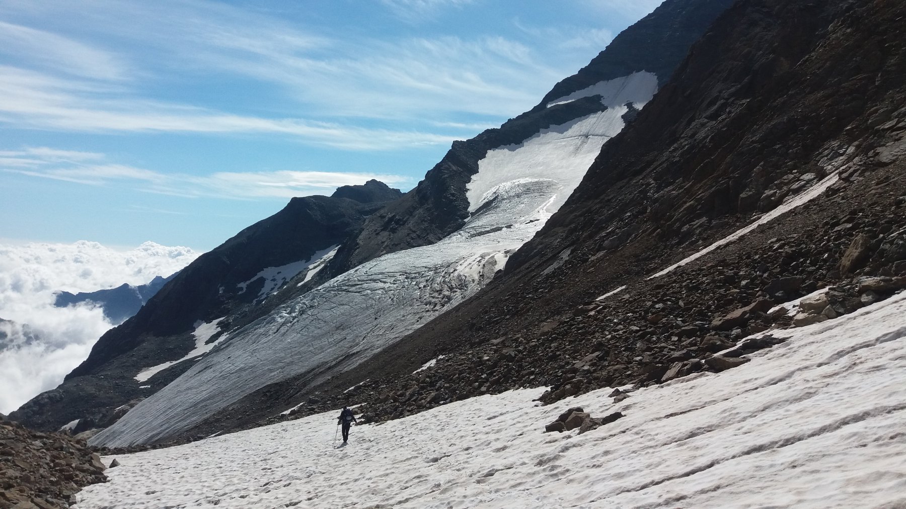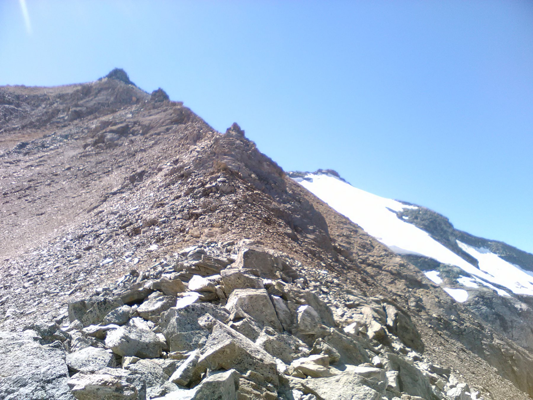 Quel che resta del ghiacciaio di Sea percorribile senza ramponi, cresta finale esposta.