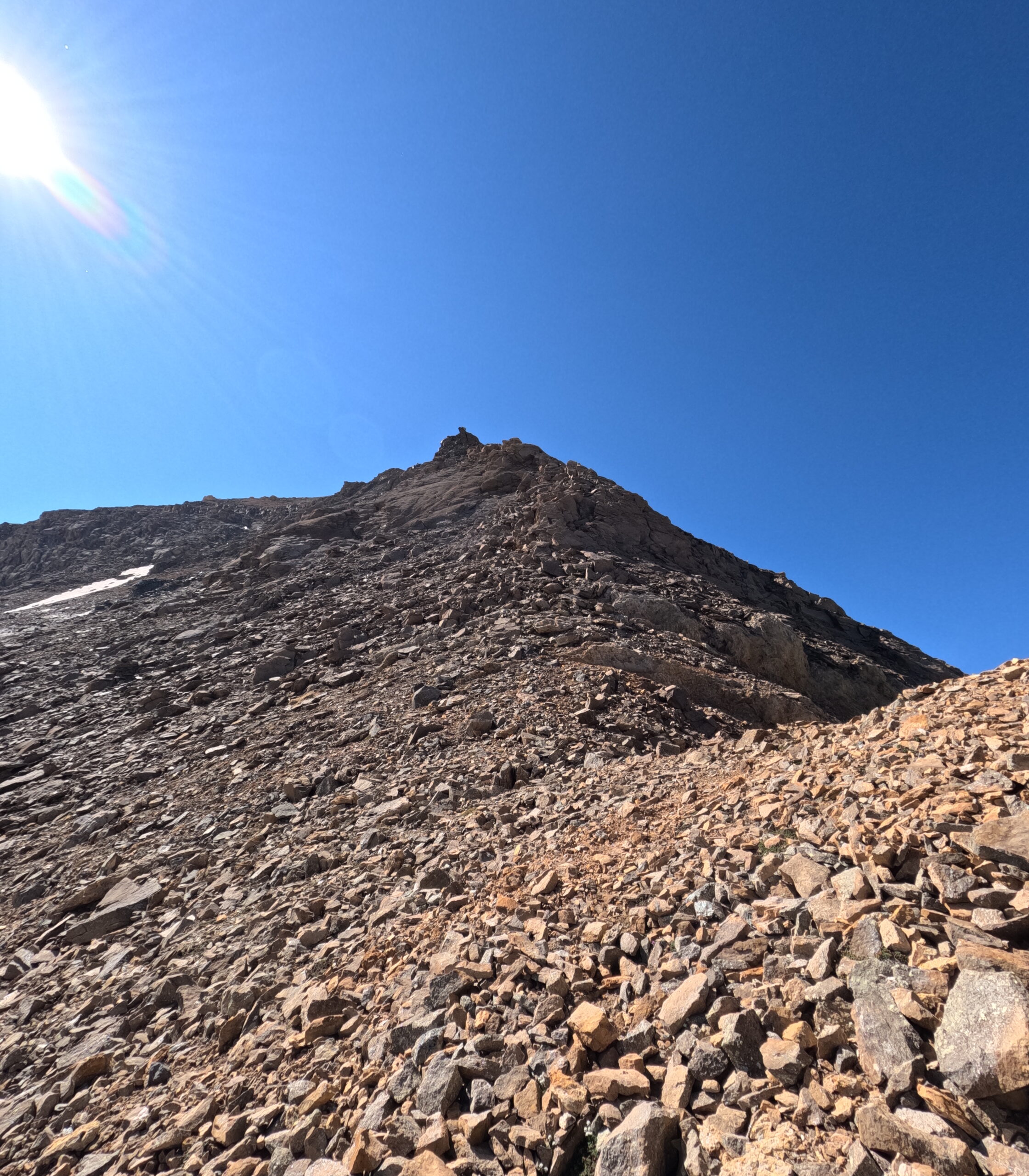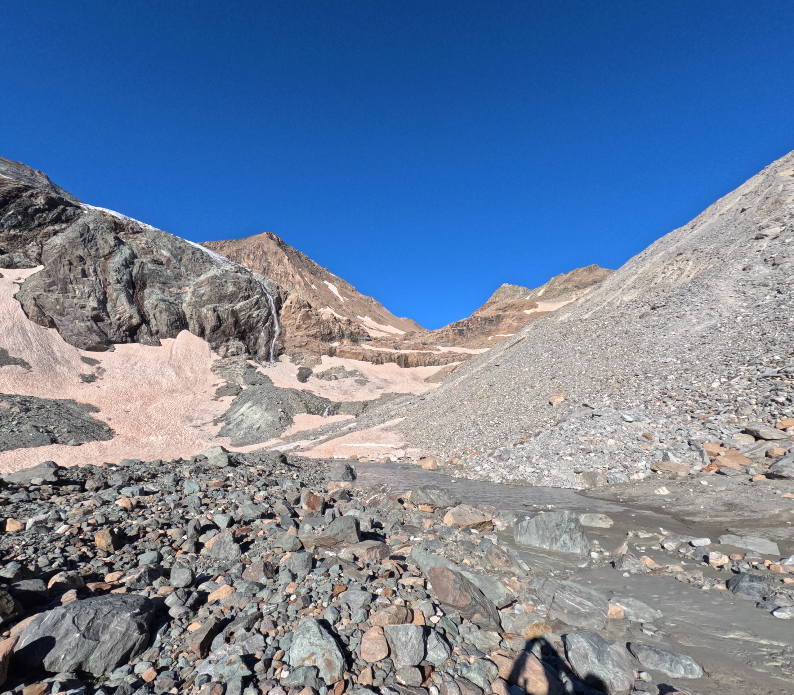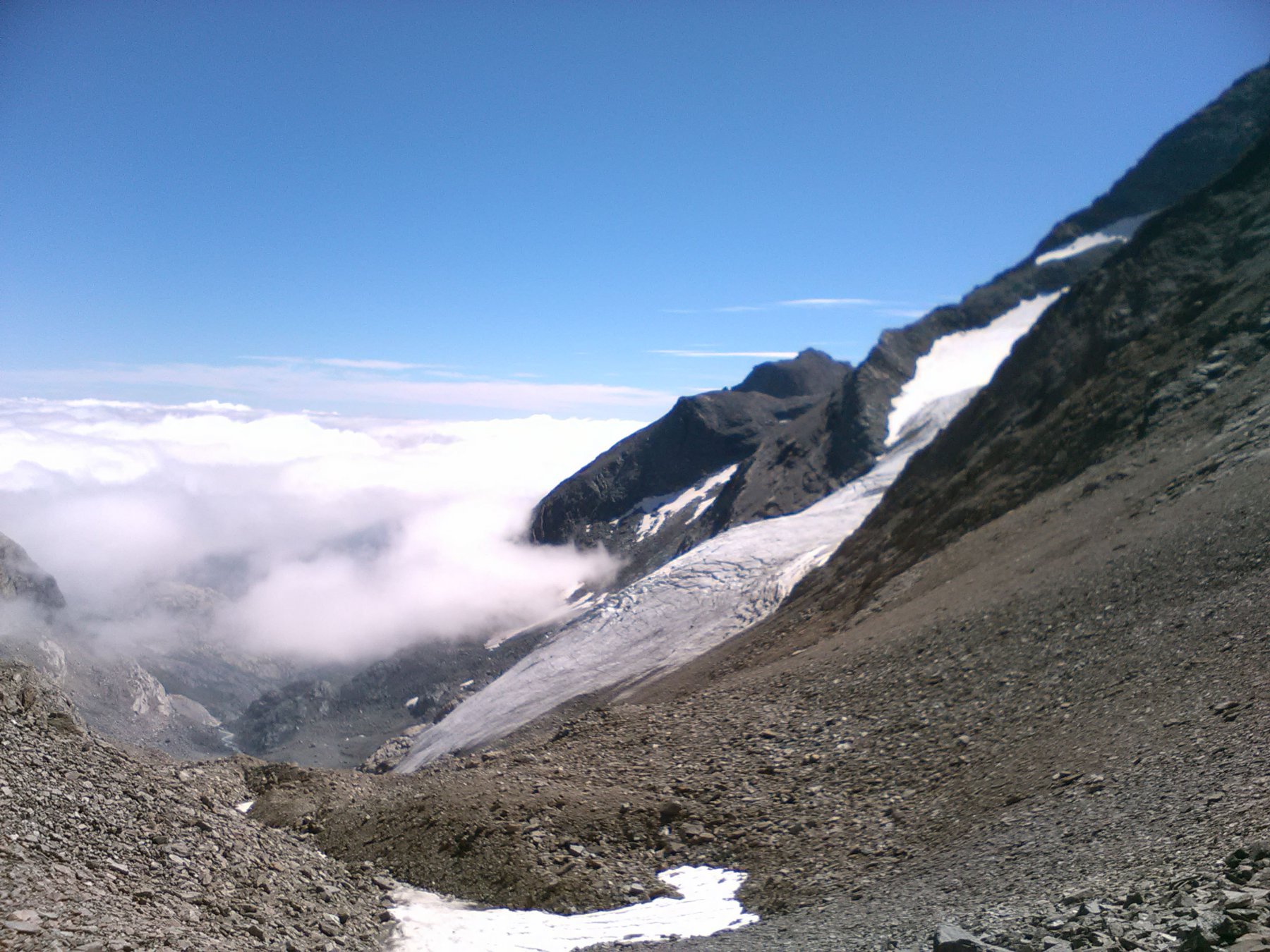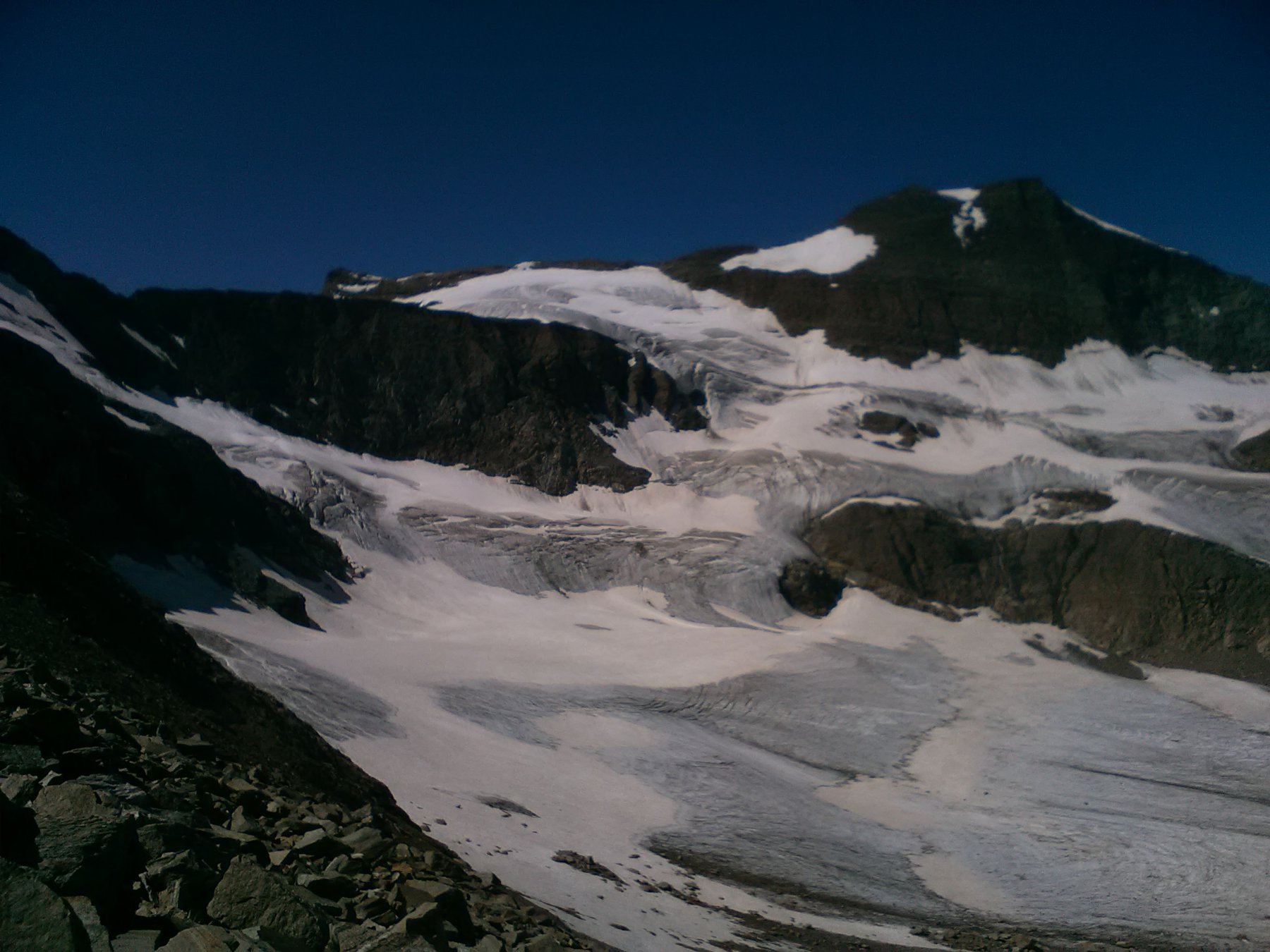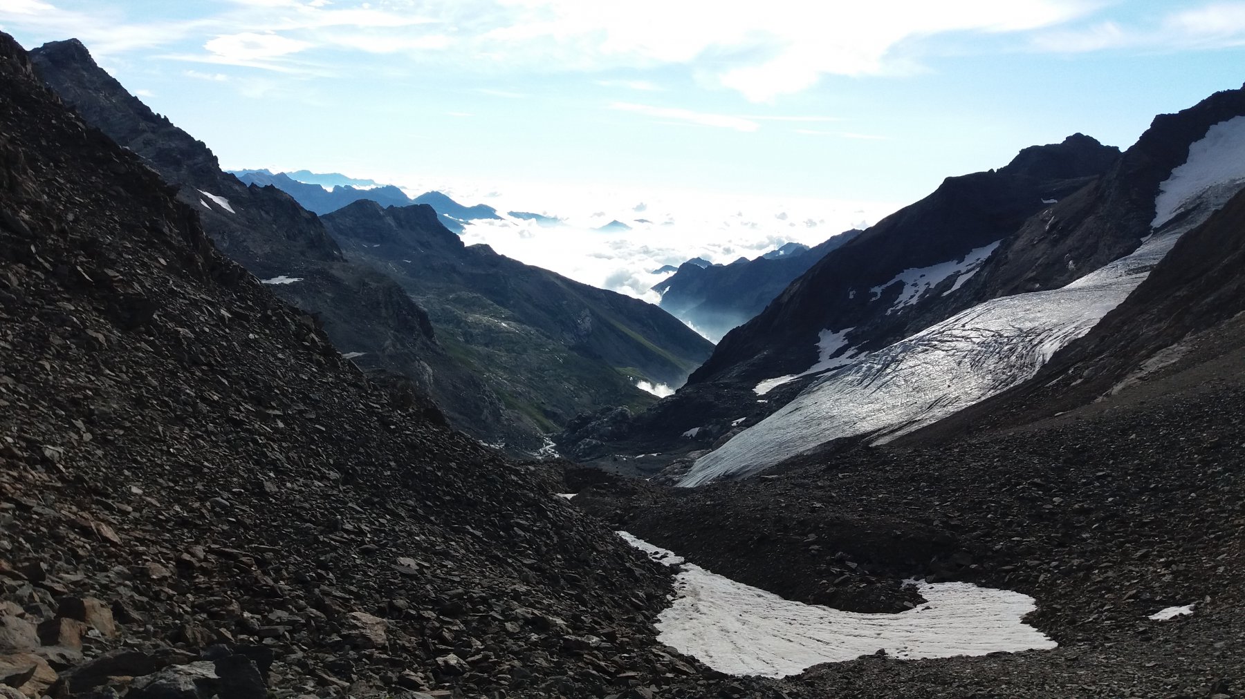 Quel che resta del ghiacciaio di Sea percorribile senza ramponi, cresta finale esposta.