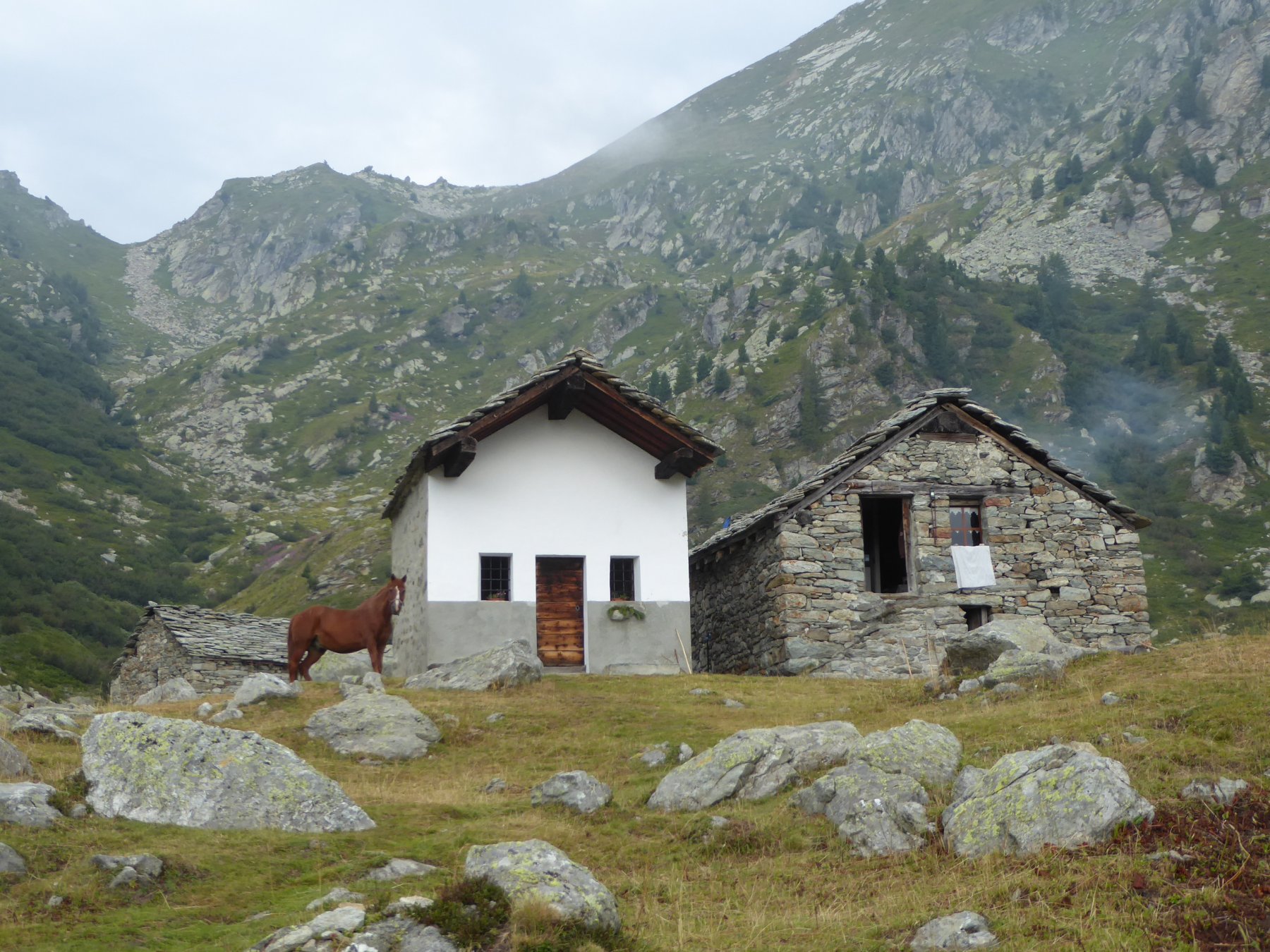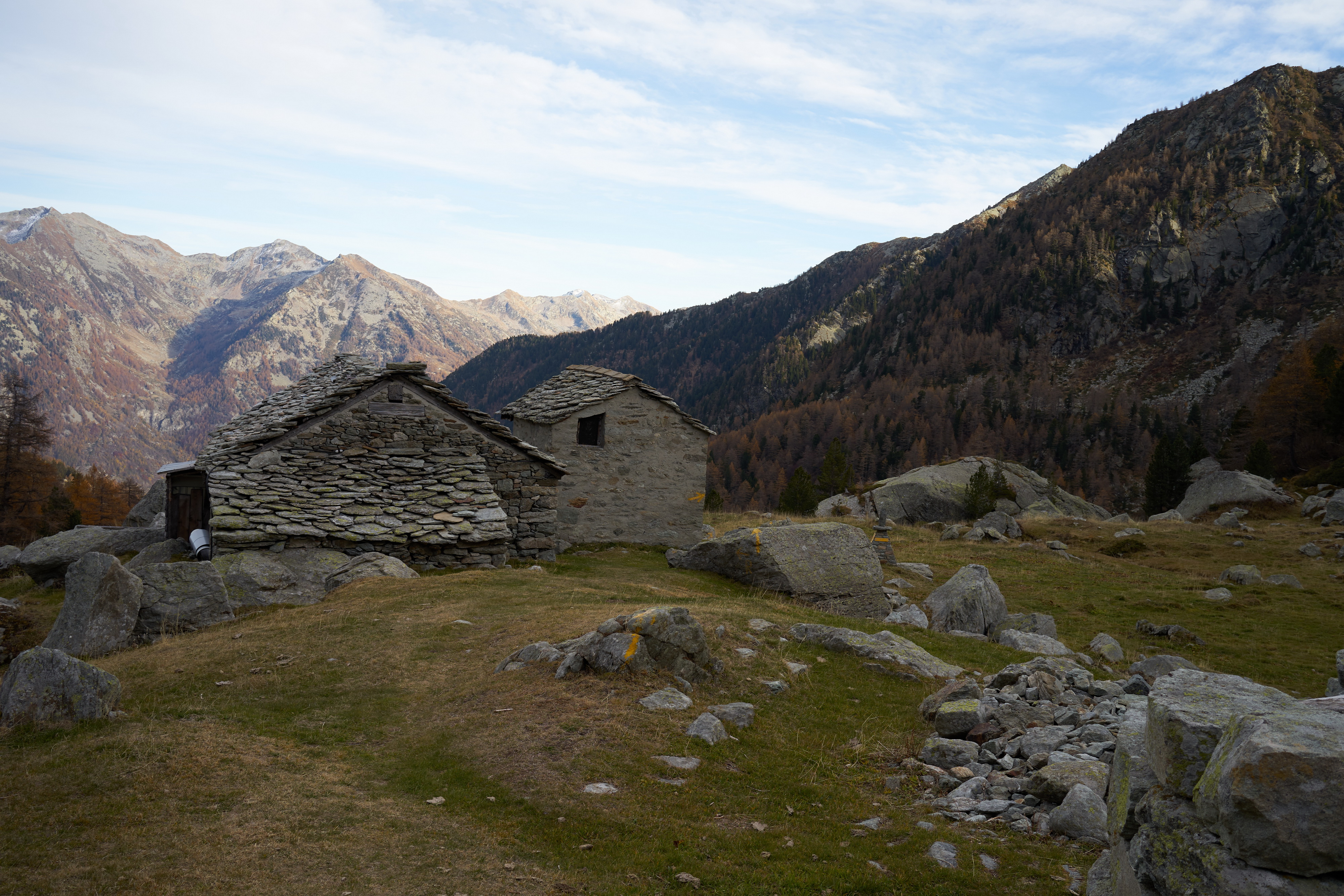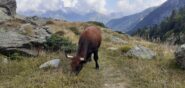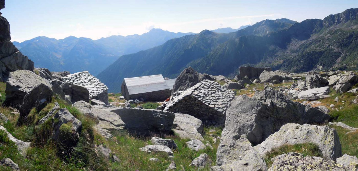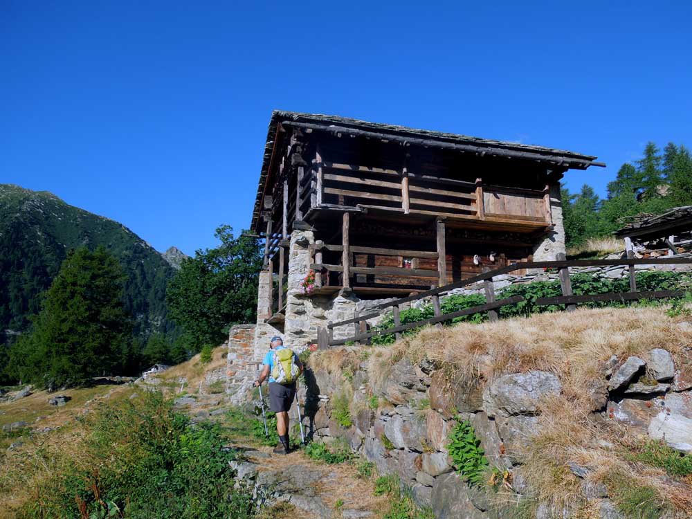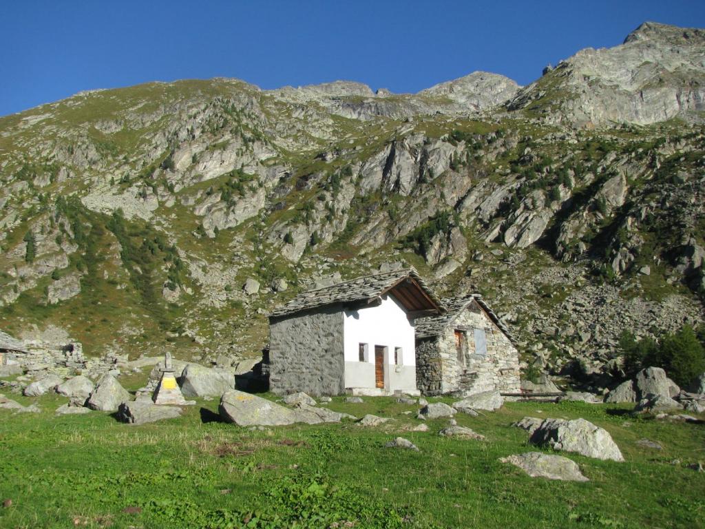 Si prosegue a monte dell’alpeggio, sempre su sentiero ben segnalato, in direzione ovest, raggiungendo in breve un ruscello che sgorga dalla montagna (ultima acqua che si incontra), e quindi si riprende a salire per magri pascoli su terreno abbastanza ripido.