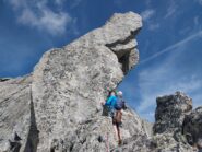 Proseguire in sulla cresta su grossi blocchi e raggiungere la croce di vetta.