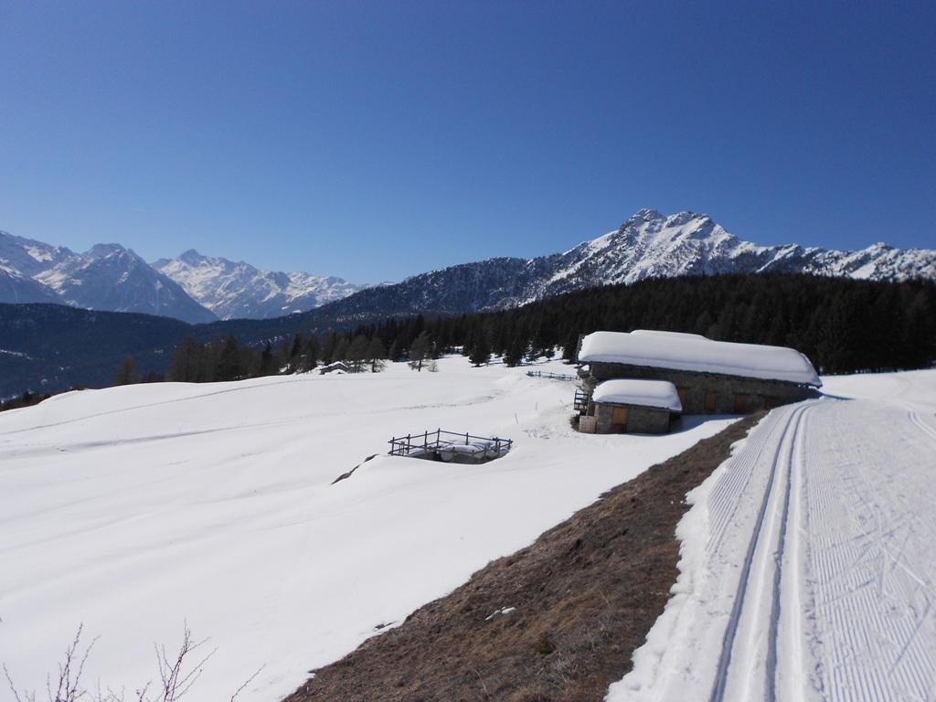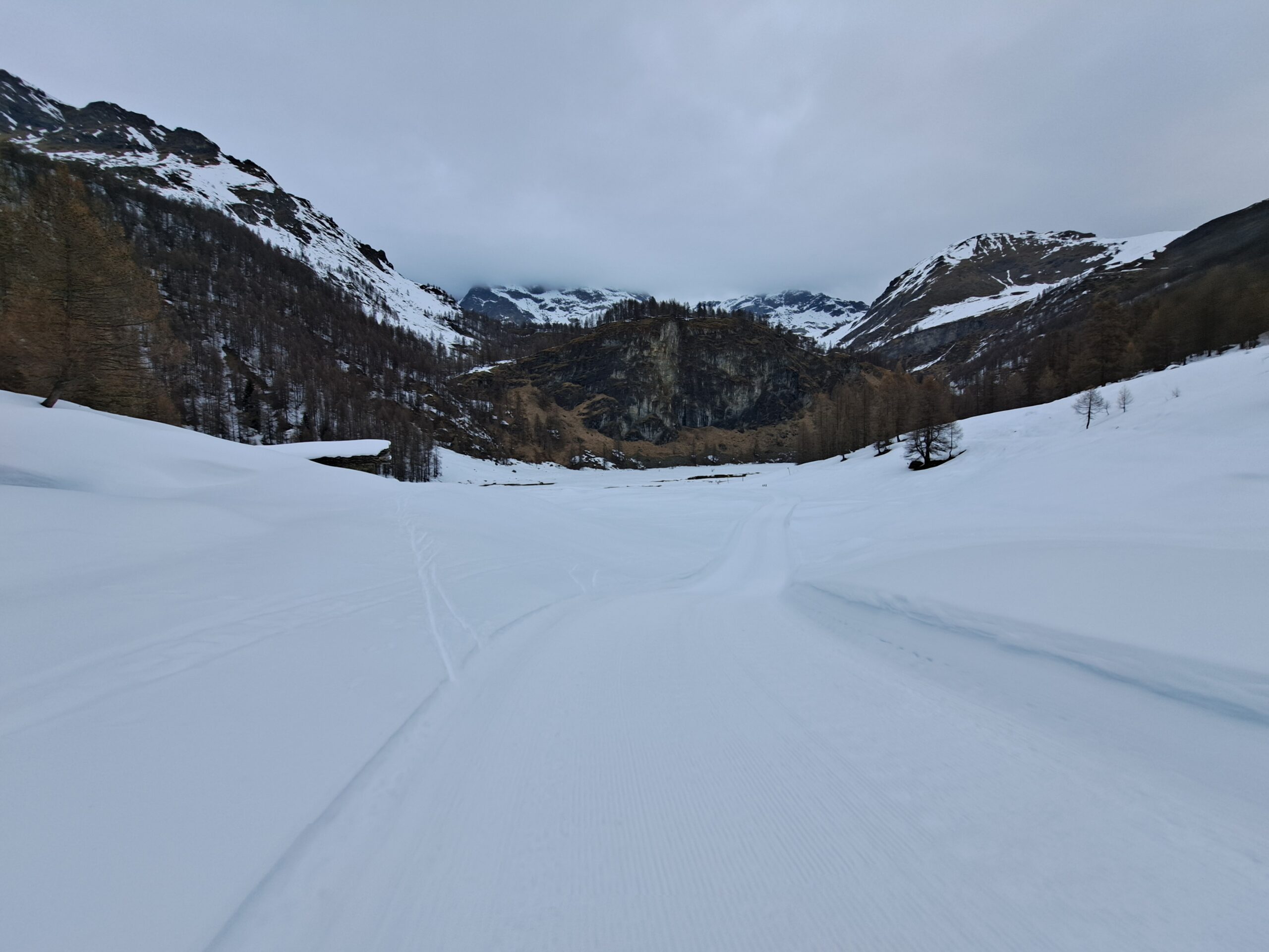 Grandes Montagnes: dal Bar lo Vierdzà seguire la traccia in ascesa che si prende alla confluenza d’arrivo della pista Maisonette; salire quindi fino ad attraversare le piste di sci a Chantornè (attenzione). Seguire la strada interpoderale che, molto panoramica e a mezza costa, tocca le case di Chavannes, poi prosegue dopo una salita fino a un bivio: a sinistra variante più ripida e tecnica, a destra mezzacosta e poi discesa. Le due piste si ricollegano e si prosegue fino allo Stagno di Loditor 1919 m. Di qui è possibile salire ancora con la pista tecnica e per sciatori esperti, che raggiunge le case di Gillarey 2182 m, luogo molto panoramico. Al rientro, dopo aver passato l’emissario dello stagno, si può prendere a destra una bellissima variante che si snoda nel plateau ai piedi dell’Alpe di Tsantè de Guerra 1939 m (incantevole). Altresì, sempre durante il ritorno, si può seguire a destra una variante che raggiunge le piste di Chantornè e, con breve tratto lungo di esse, si ricollega all’andata.