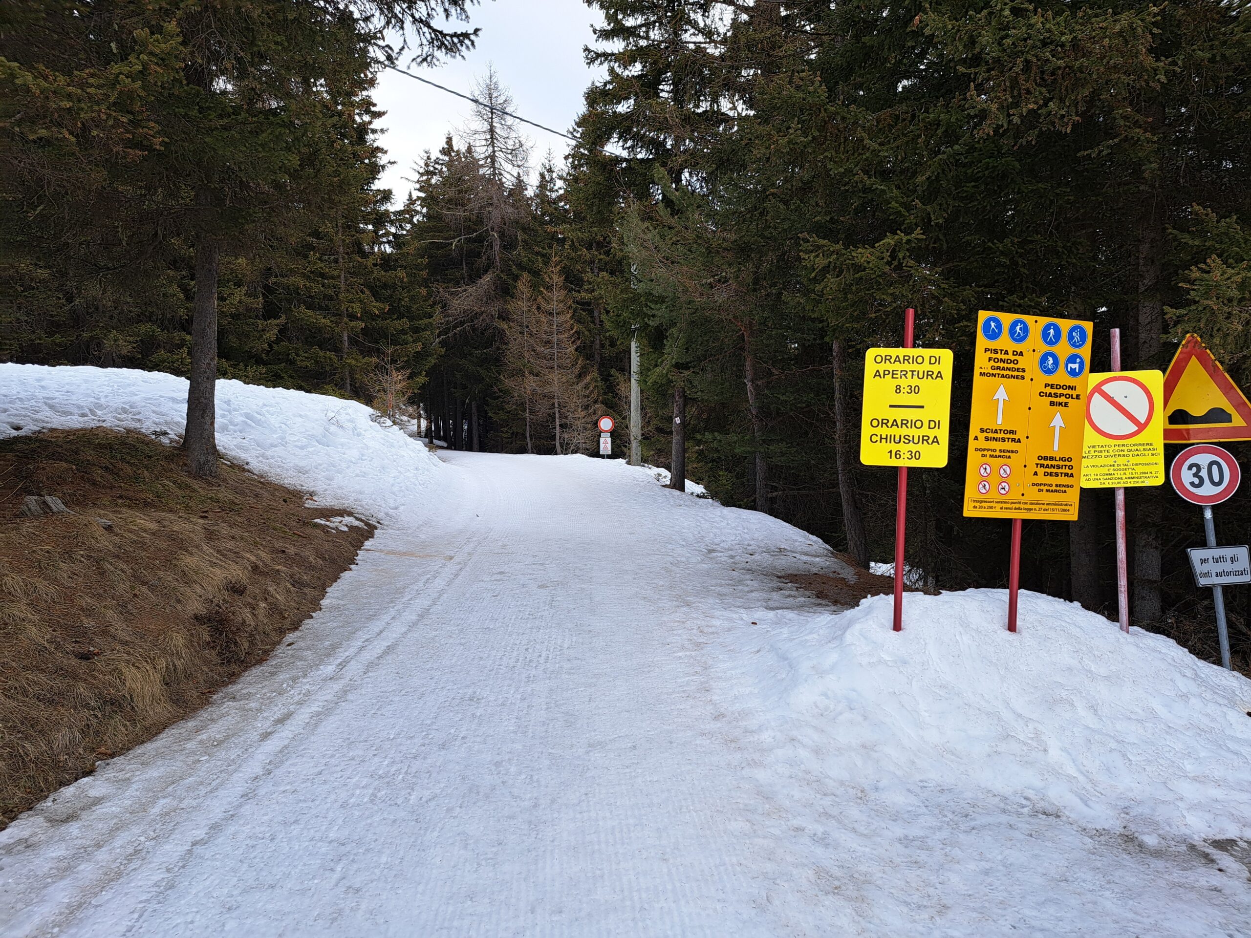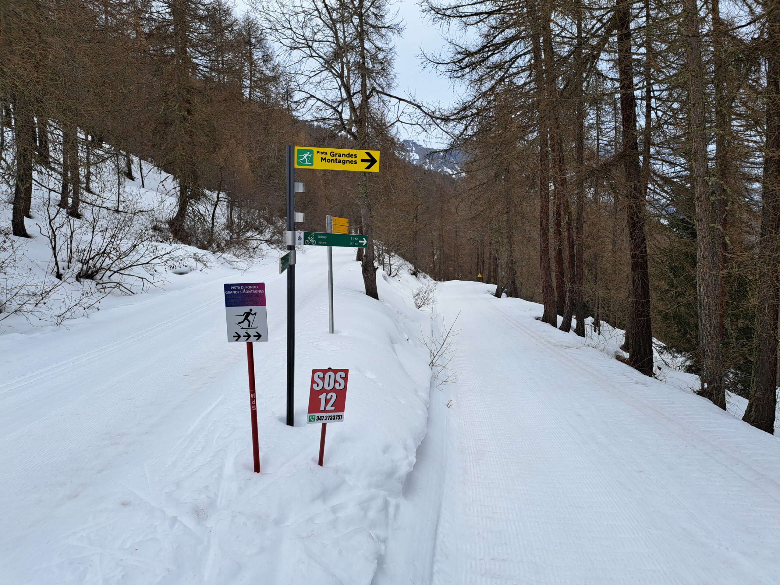 Dal foyer du Fond abbiamo avuto difficoltà a raggiungere la pista Grandes Montagnes, in particolare dal punto in cui si attraversano le piste in poi… tant’è che dal ristorante “Les Montagnards” siamo saliti seguendo una pista battuta dal gatto andando dritti per dritto verso il “Ristorante Des Troncs” e poi al Bar Ristoro “La Montanara”, punto di partenza della pista (in prossimità dell’arrivo dell’ovovia).