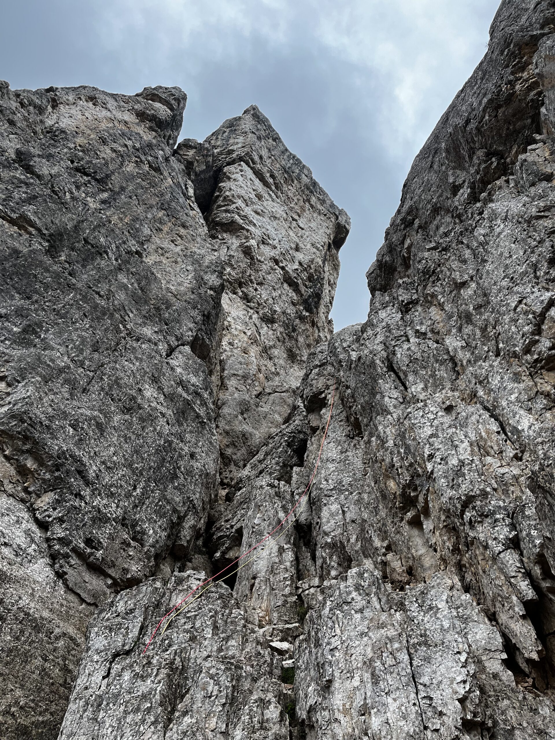 - L5: placca e poi diedro su buona roccia, e poi piccolo canalino con pietre instabili; (V, IV; 1 chiodo + 1 di sosta – 30 metri )