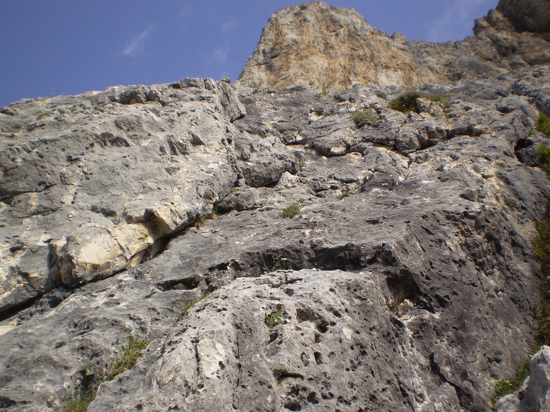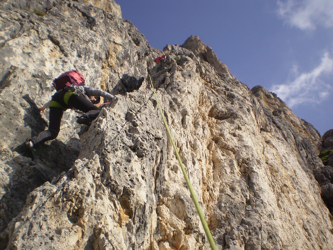 bella via di 8 tiri difficoltà max IV+ ; soste , anelli cementati e chiodi di passaggio presenti