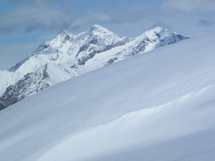 Siamo saliti nel valloncello a sinistra della dorsale che scende sull’Alpe Pinalba. In salita la neve portava molto bene, tanto che da quota 1800 abbiamo tolto le racchette. La discesa è però stata un’altra storia, perchè la neve ha mollato di brutto ed è diventata una vera pappetta. Infatti dal pianoro di quota 1800, in discesa, abbiamo seguito il filo della dorsale, sgombra di neve, che ci ha portati direttamente all’Alpe Pinalba. Giornata nel complesso buona, ma che alternava momenti di caldo torrido a raffiche di vento freddo. Molto bello il panorama dalla cima. Con Marisa, Marta, Piero e Fausto.