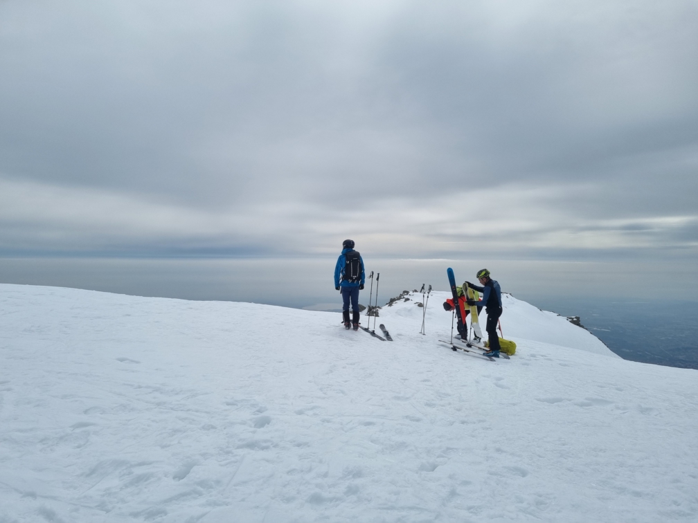 15 min di portage sulla strada, prima di trovare neve continua. Poi, nessun problema fino in cima.
