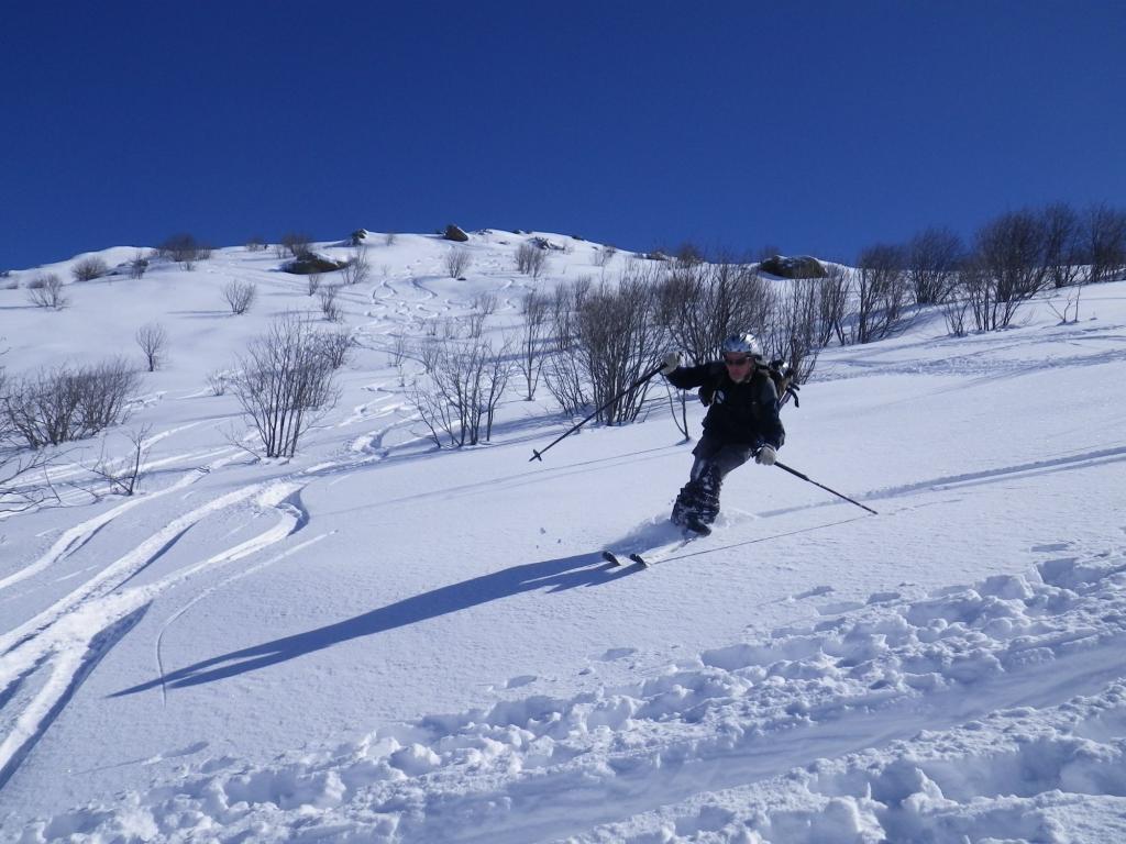 Per scendere conviene ancora la strada oggi discretamente innevata con solo due pezzi di pochi metri pelati.