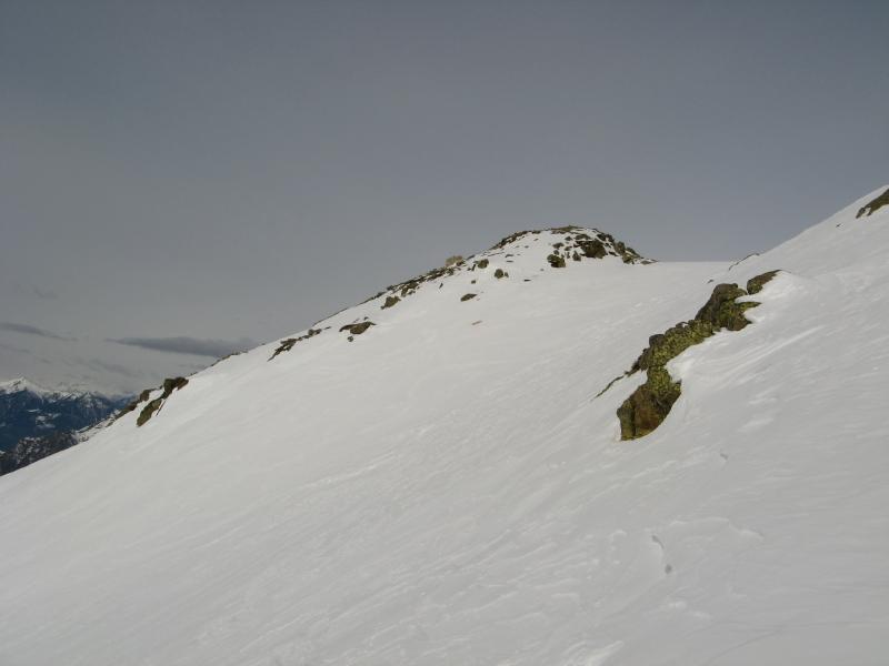 I pendii diventano più ripidi, spostarsi a sinistra per risalire un ripido vallone, al termine spostarsi ancora a sinistra e continuare la risalita, arrivati nella parte finale si attraversa verso destra e con un ultimo tratto ripido si arriva nel pianoro sottostante la vetta ed in breve al mucchio di pietre della vetta