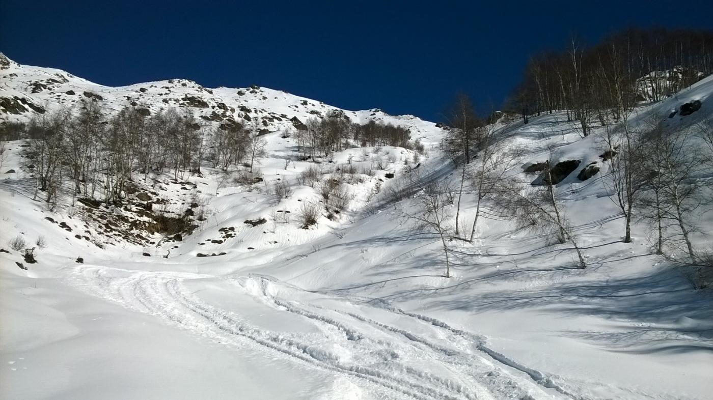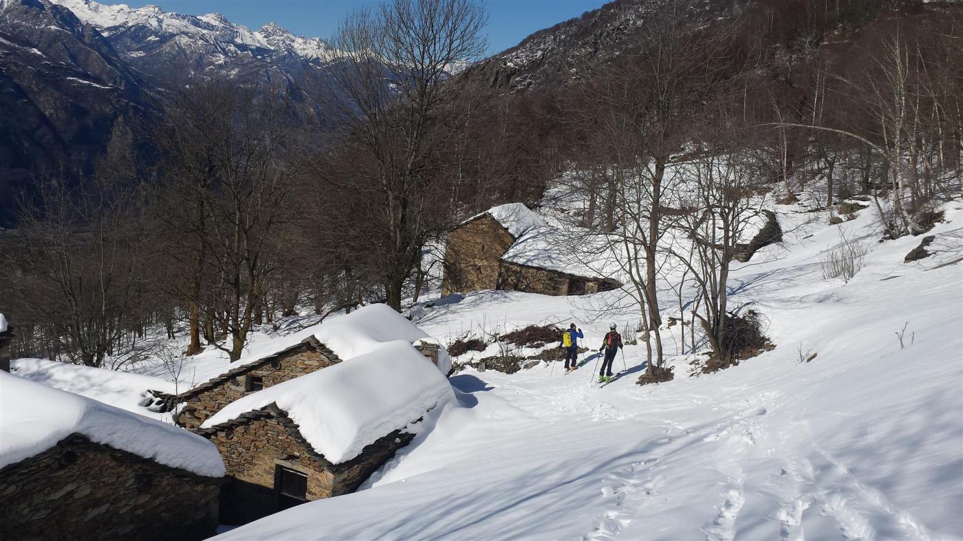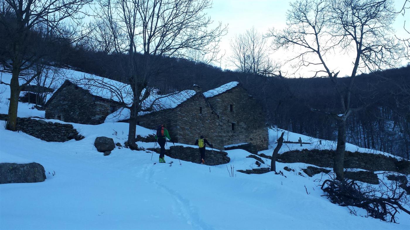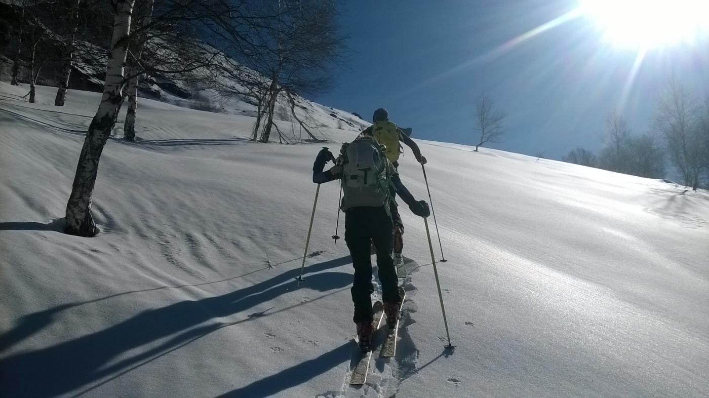 Superare la baita e proseguire per un tratto per poi, quando il bosco diventa più fitto, attraversare verso destra per raggiungere ampi pendii.