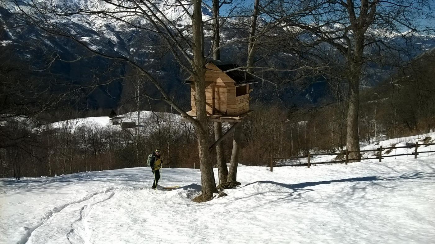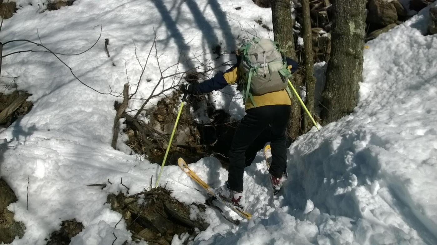 Neve dall’auto,parcheggiata al ponticello poco oltre borgata Valcauda,ma da subito crostosa,parte iniziale con molto bosco più o meno fitto e aggiramento dei parecchi muretti di contenimento presenti,poi si arriva a pendii più aperti ma sempre con la malefica crosta.
