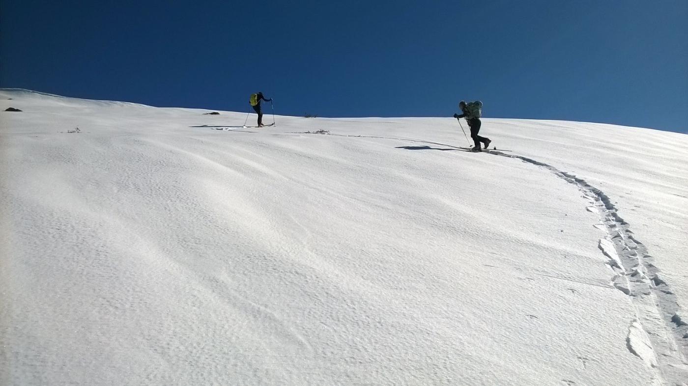 Ci siamo fermati a circa 200mt dalla punta,continuare non avrebbe avuto senso,crosta e parecchie pietre fuoriuscite per il vento degli scorsi giorni,oggi almeno quello non c’era.