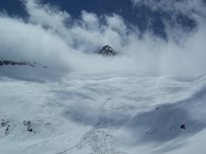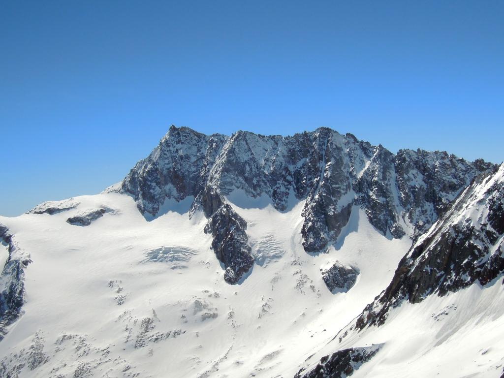 Dirigersi in direzione Sud-Est tenendo sulla destra l’isolotto roccioso (2160 metri) e raggiungere il ghiacciaio del Tallihorn.